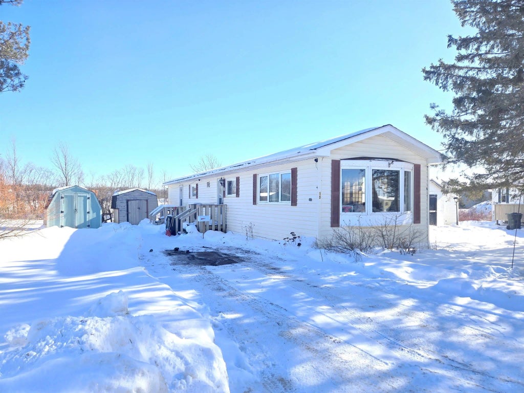 Cozy two bedroom mini home suitable for first time buyers and also retirees looking for one level living. This home offers an affordable entry point in the real estate market. The home heats well with a pellet stove and electric baseboard heaters. Located in a well established park, the property includes 2 sheds, paved driveway and a variety of flowering shrubs. Fridge, stove, washer, dryer, security cameras, curtains, pressure washer and shop vac are all included!