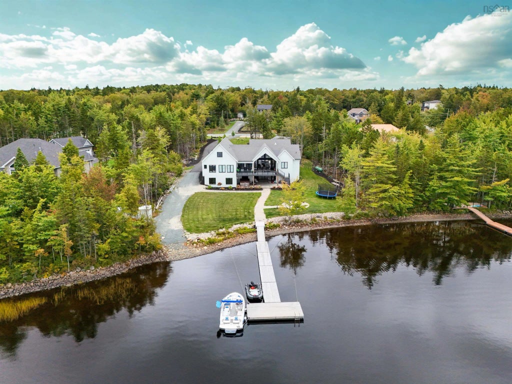 EXECUTIVE LAKEFRONT HOME ON McCABE LAKE! Sit back, relax, and picture yourself living the East Coast dream at your stunning 1.3-acre lakeside paradise. Nestled in the highly sought-after Indigo Shores subdivision, this executive home offers 239 feet of pristine, private waterfront on the crystal-clear waters of McCabe Lake. As you step through the front door, you’re welcomed by a bold, bright space that captures lake views from nearly every vantage point. The main floor features a spacious, central great room with majestic vaulted ceilings, elegant archways, exposed beams, built-ins, and a beautiful brick hearth with propane fireplace—ideal for entertaining or cozy family nights. Just off the great room is a stylish sitting area and dining space perfect for hosting guests. The kitchen is a true showpiece, featuring custom cabinetry, quartz countertops, side-by-side fridge/freezer, farmhouse sink, gas stove, and a jaw-dropping 10’ island. The oversized walk-in pantry includes open shelving, prep counters, bar fridge, and an extra sink. Three generous bedrooms are located on one side of the main floor, while the luxurious primary suite is privately tucked away on the opposite end. Vaulted ceilings, wood beams, lake views, a feature wall, massive walk-in closet, and a spa-like ensuite with soaker tub and custom tile shower complete this retreat. A large laundry/mudroom with extensive storage connects to the attached double garage. Downstairs is a massive family room with custom millwork, kitchenette, guest suite, craft room, office, bonus room, storage, gaming room, and a whimsical kids' play space under the stairs. A gym with rubber flooring and wall-hung water fountain completes the space. Outside: a triple detached garage with 500 sqft roughed-in suite, boat storage, boat launch, floating dock, firepit, and a covered deck with incredible lake views. This section of McCabe is known for depth, boatability & serenity. Book your showing today!