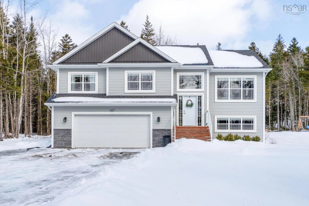 Welcome to 627 Magenta Drive, a stunning executive split-entry home in the highly sought-after Indigo Shores Subdivision. Designed for modern living, this home is bathed in natural light and showcases contemporary elegance throughout. The main floor features a sleek, open-concept design with a stylish kitchen boasting white cabinetry, quartz countertops, and stainless steel appliances. The space flows seamlessly into the living area, where vaulted ceilings and an inviting electric fireplace create a warm and sophisticated ambiance. The main level also includes a full bath and three spacious bedrooms, including a luxurious primary suite complete with a walk-in closet and a private ensuite. A beautifully crafted staircase leads to the lower level, offering additional living space with a generous recreation room, a full bath, and a versatile bonus room—ideal for guests, a home office, or a gym. Convenient access to the built-in garage and ample storage enhance both functionality and comfort. Situated on a large, private lot, this home is equipped with ductless heat pumps for energy-efficient climate control. Its prime location places you just minutes from Highway 101 and the many shops, services, and amenities of Lower Sackville. Don't miss the opportunity to call this exceptional property home—schedule your private viewing today!