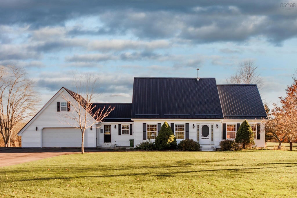 Discover this magnificent one-owner retreat, a 1.9-acre property in the heart of Brookfield. This stunning home offers both peaceful seclusion and modern efficiency. The backyard features solar panels that adjust effortlessly to capture seasonal sunlight, optimizing energy costs year-round. A durable metal roof, an electric car charger, and a double-car garage with a bump-out for a ride-on lawnmower add both practicality and sustainability. Above the garage, a finished loft offers endless possibilities. The open-concept kitchen, dining, and living area showcases gleaming hardwood floors and south-facing windows that flood the space with natural light. A charming wood stove at the heart of the home adds warmth and ambiance for gatherings large or small. With in-floor on-demand hot water heating on every level, along with 2 heat pumps, the home maintains cozy comfort throughout. Three bedrooms have their own bathrooms, while the fourth bedroom currently doubles as a convenient office space. Meticulously clean and move-in ready, the home is equipped with a separate generator panel (generator included) for piece of mind. The landscaped lot features lovely gardens, plenty of privacy, and ample room for children to play. The bright, spotless basement offers a large workshop, a crafting or wrapping area, a spot for off-season gardening and a play area for children. Located a quick five-minute drive to the highway for easy commuting to Halifax, the airport, or Truro, and with the Sportsplex nearby, offering skating, curling, hockey and summer baseball, this property perfectly balances country charm with modern amenities.