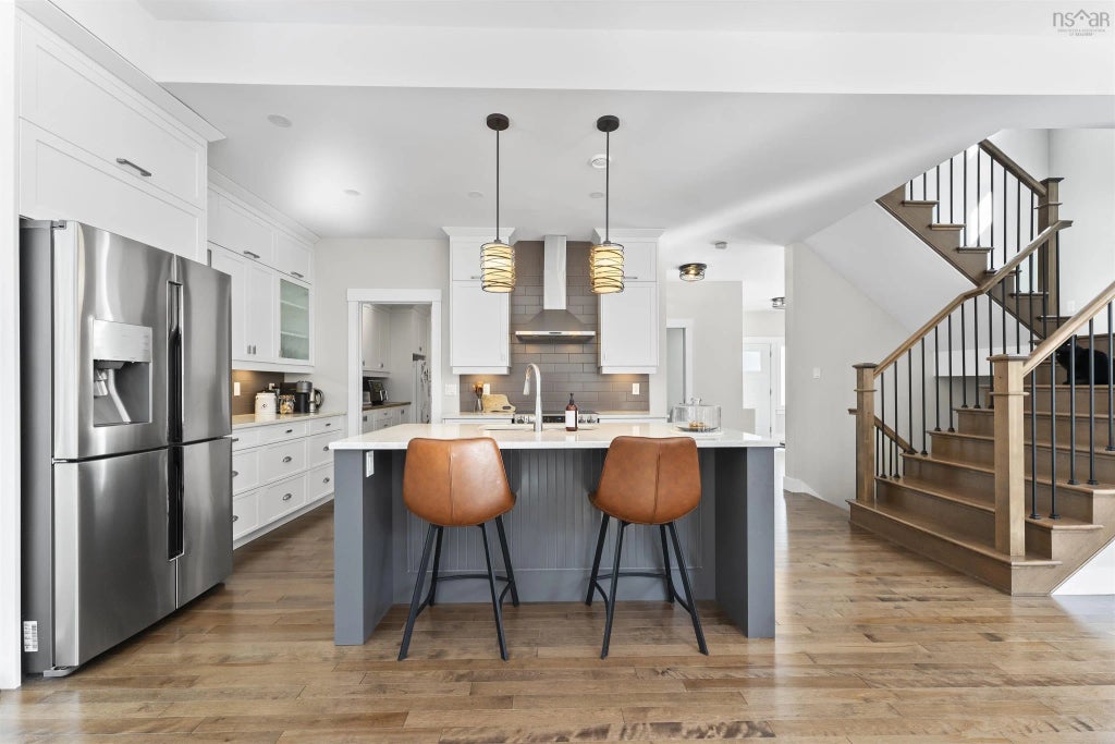 This finely crafted two-storey executive home is located in Halifax’s Premier Lakefront Community of Indigo Shores at McCabe Lake. Kayak or simply enjoy the peace and harmony of nature on this remarkable riverfront lot. Enter into the bright open concept main level that is flooded with natural light from the thoughtfully placed windows. The large, functional kitchen with dual-entry butler’s pantry, a spacious island and quartz countertops is a chef’s dream come true. You will enjoy the ability to host family and friends easily within the layout with a tucked away dining space and welcoming living area with propane fireplace. The second floor hosts a primary bedroom with an ensuite bathroom fit for a spa day with a custom shower and freestanding soaker tub. Two additional bedrooms provide plenty of space for everyone. The finished walk-out basement offers a bright recreation room with plenty of space for your home gym and workspace. Gain additional space and storage with the two-car garage. Located close to the front of subdivision, it is an easy commute to anywhere within the city with direct access to Highway 101. Enjoy the tranquility of this family community that is in high demand. Home features include fully ducted heat pump, Silent Flooring System, and EnerGuide Insulation Package.