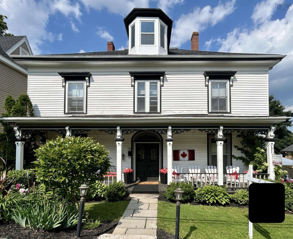 Completely renovated and updated Victorian home in a quiet and sought out neighbourhood. Situated on a hill over looking downtown Windsor and the Avon River, this stunning home is walk-able distance from the restaurants and shops as well as paths and lake. Circa 1873, this 4/5 bedroom, 4 bathroom home has maintained its original grace with crown mouldings, hardwood floors, 12' ceilings and 5 stunning fireplaces while being modernized with current electrical, heating, and plumbing standards. From the grand entrance with curving stairwell to impressive wood trim throughout, each room celebrates historic charm while having all the modern updates and amenities. Some of the many upgrades that make this home in move in condition include: new attic dormers, new oil tank, 2 new hot-water tanks, new wiring and switch board, 2 full additional bathrooms, new oil furnace and updated wood furnace ( two sources of heat and one is piped to heat if no electricity) and an updated kitchen that boasts two 220 outlets as well as new floor, counter and appliances. In addition to the main living area there is also a huge (ready to be completed) attic and a large basement with cement floor, laundry room, and door leading to the back yard. The lot is completely landscaped with fenced in back yard featuring a lovely patio, man-made pond, and perennial garden. The R2 zoning allow for this property to anything from a B&B or apartment rental to the grand home it currently is. If you are looking for that touch of yesteryear charm already updated and ready for you to move in – this is the place.
