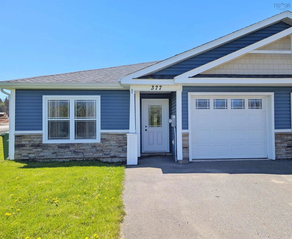 Step into this charming 1,222 sq.ft. semi-detached home and prepare to be wowed! Nestled in the heart of Avonport, this lovely bungalow sits on a spacious, sunny corner lot with a double paved driveway. Boasting high energy efficiency, low utility costs, and numerous upgrades throughout, this home is a true gem. The open-concept living area is perfect for entertaining, with sunlight pouring in through large windows, creating a warm and inviting atmosphere. The modern kitchen features solid wood cabinets, seamless Corian countertops, stainless steel appliances, and a sit-up bar, ideal for a quick snack or culinary masterpiece. The main room includes a ductless heat pump, a garden door leading to your side deck, and ample space for relaxation. This freshly painted beauty offers two spacious bedrooms, each with its own private bathroom – perfect for added privacy and pampering. Enjoy the convenience of a single attached garage, providing secure parking and additional storage space. Built on a sturdy slab, this home ensures durability and low maintenance for years to come. With easy access to the highway, schools, Wolfville, shopping, and more, this location is perfect for commuters. Don’t miss out on this fantastic opportunity to own a move-in ready home in a friendly neighborhood and start living your best life!