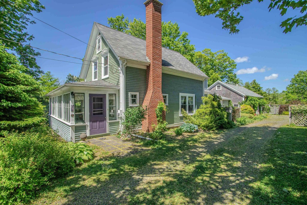 Designated as a Registered Heritage Property, this spacious, comfortable Victorian home (circa 1874) is set within perennial, woodland gardens. The plantings are diverse and are visited by winding footpaths and little wooden bridges. A free-flowing stream marks the bottom of the garden. Crank the handle of the old door bell to pass from the spacious, bright L-shaped 3-season verandah into the front hall. A pleasant parlour on the right features a wood burning fire place with an air-tight insert. The insert has a fan and directs heat both throughout the parlour and up to the second floor. On the same hall is a space for hanging outdoor clothes. Pass up thirteen carpeted stairs to the second floor. This is an interesting area featuring eight rooms, including a dressing room, a bedroom with a rounded wall, a large airy bathroom with claw-footed tub, and the former nursery. The nursery is a large, pleasingly proportioned room characterized by an historically interesting children's linoleum (12x9) featuring illustrated games and texts of nursery rhymes. The linoleum is movable. Downstairs is the long living room with abundant sturdy shelves, and from here one enters through elegant glass doors into the equally elegant dining room where there are built-n drawers and a glass-faced cabinet. It is a room that conveys a feeling of calm. The bright kitchen leads off the dining room and from there into a summer kitchen which leads into a large workshop thence into the barn and thence into the grand space of the garden. This house has 3 heat pumps. Additional features - pantry, propane stove for heat in case of power outage, garden pergola shaded with kiwi vines, electrified workshop and barn.