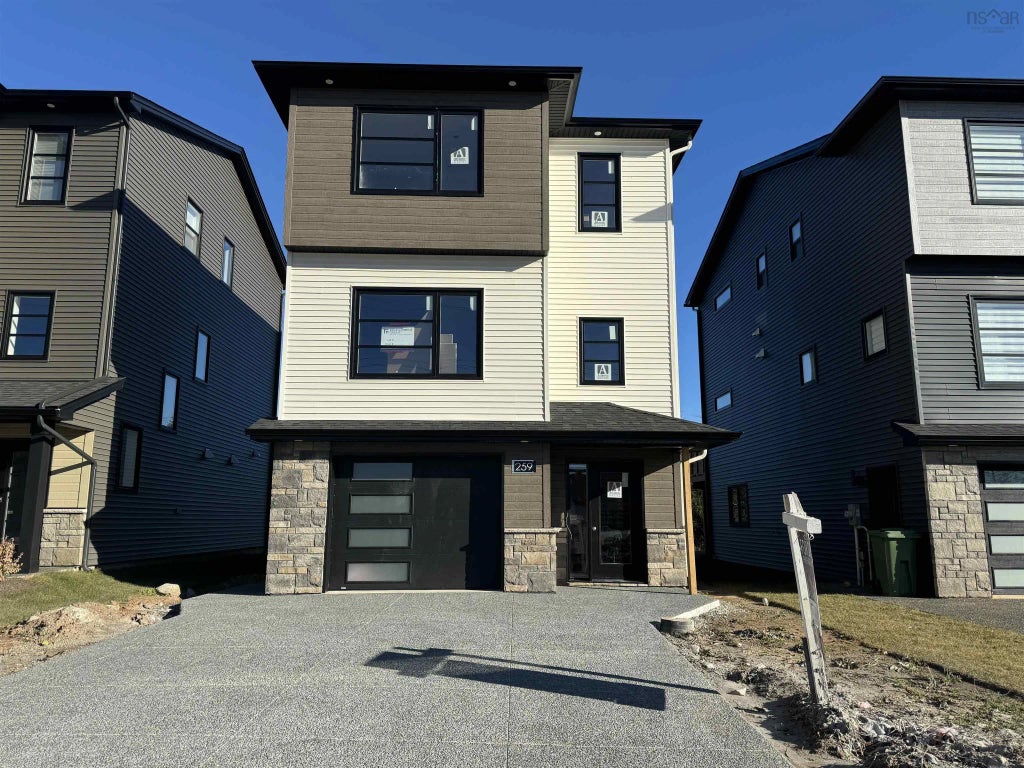 FH Development Group's "Loft II" plan nestled on a treed-lot at Links at Brunello, a resort-style-living golf community located just 5-minutes from Bayers Lake Park and 20-minutes to downtown Halifax! This well thought, grade entry design features 3 bedrooms, 3-full +1-half bathroom, the LOWER LEVEL offers a full 3-piece bathroom,, generous sized, self-contained recroom with frosted entry door and patio doors to a private landscaped backyard. The main floor is open concept living room/kitchen and dining room with oversized windows and gorgeous 50' electric fireplace, quartz counter-tops in the kitchen with backsplash and under-cabinet lighting; large kitchen pantry with hidden cubby for extra storage, every square inch of space is utilized! A 2-piece powder room completes the main floor. Second level includes 3 bedrooms, primary bedroom ensuite with custom shower and his/her sinks, 2 other generous sized rooms, third full bathroom and convenient 2nd floor laundry room. Other Features include -Exposed Aggregate Concrete Driveway, Landscaped lot + 7-Year Atlantic Home Warranty inclusive of 1-year builder warranty.