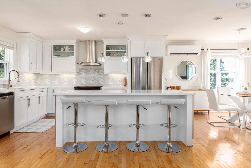 Welcome to 77 Candy Mountain Road, a stunning 4-bedroom, 2-bathroom bungalow that offers the perfect blend of comfort and lakeside living. This west-facing home captures beautiful sunset views over Lawrencetown Lake and features large sliding doors on both levels that open to a spacious deck, making it the ideal spot for entertaining or simply enjoying the tranquility of the water. Inside, you’ll find a newly renovated kitchen with quartz countertops and stainless steel appliances, including a wine fridge, an industrial heat pump for year-round comfort, and a cozy propane fireplace that adds warmth and charm to the living space. Move-in ready, this home invites you to start your day with a peaceful paddle on the lake or relax in the hot tub with a glass of wine. The front yard had a wired accessory building with so much potential to use as an art studio, hobby space, or a charming bunkie for guests. Just 5 minutes from Conrad’s and Lawrencetown Beaches and 10 minutes to Cole Harbour, this location offers the best of both serene lakeside living and convenient access to nearby amenities. Don't miss the chance to make this beautiful lakeside retreat your new home!