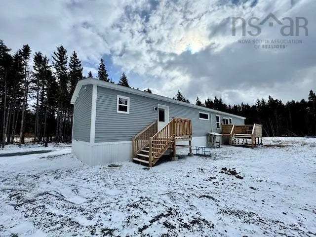 This beautiful 3-year-old home is perfect for first-time buyers or those seeking one-level living. Nestled on a spacious, tree-lined, level lot, it offers privacy and tranquility just minutes from central Mount Uniacke and all amenities. Inside, the bright, open-concept design features a cathedral ceiling in the main living area. The U-shaped kitchen is ideal for entertaining, complete with an island, walk-in corner pantry, and included appliances: fridge, stove, dishwasher, and microwave range hood. A dedicated office nook provides extra convenience for those who work from home. The home boasts three spacious bedrooms and two full bathrooms, including a primary suite with a walk-in closet and ensuite bath. Two heat pumps ensure efficient heating and cooling year-round. With no park fees, this property is an affordable and move-in-ready gem. Conveniently located close to the city, parks, and shopping, it offers modern comfort in a peaceful setting.