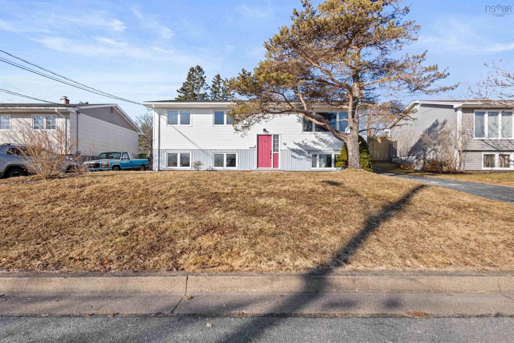 Welcome to 66 Elm St, a beautifully updated split-entry home nestled on a quiet cul-de-sac in the heart of Cole Harbour. Conveniently located just minutes from shopping, schools, parks, and all essential amenities, this home is perfect for families and professionals alike. From the moment you arrive, you'll be impressed by the curb appeal, featuring brand-new siding (2023) and a spacious, landscaped front and backyard—complete with a custom-built shed (2024) for extra storage. Step inside to a bright and inviting open-concept living space, where the electric fireplace and heat pump ensure comfort year-round. The spacious dining area features patio doors leading to the deck and expansive backyard, ideal for entertaining. The main level also boasts a bright kitchen, a fully renovated bathroom (2025), a large primary bedroom, and two additional well-sized bedrooms—all with new entry and closet doors (2024). Downstairs, you'll find a fourth bedroom, a second fully renovated bathroom (2023), a cozy den, a laundry room, and a utility room—offering plenty of space for growing families or multi-purpose use. With numerous recent upgrades and a fantastic location, this move-in-ready home is a must-see!