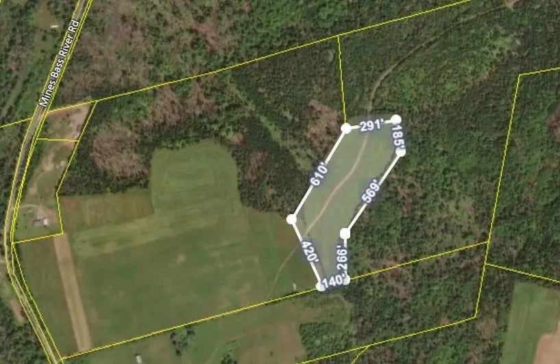 This is 6 acres of cleared blueberry land with a legal right of way to access the public roadway known as Mines Bass River Road.
