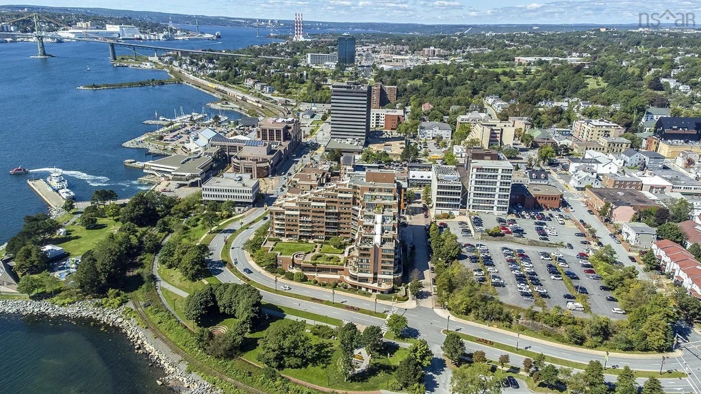 Spectacular Condo with one of a kind Views Welcome to Suite 406 of the highly sought-after Admiralty Place. This stunning 2-bedroom , 2-bath condo plus office / den, offers luxury living at its finest. It has 180 degree plus, breathtaking views of the Halifax Waterfront, Harbour and approaches, including McNabs and George’s Island. Almost every room has a water view. The open-concept living and dining area features expansive windows that flood the spacious area with natural light, providing panoramic views from every angle. Step out onto the balcony from the dining area for seamless indoor-outdoor living, perfect for enjoying your morning coffee or dining al fresco. The modern galley kitchen is a chef’s delight, featuring stainless steel appliances, warm wood tones, granite countertops, and a convenient stool breakfast/ eating nook overlooking the picturesque harbor along with a cut out to the living room. Proceeding down the hall, one discovers the spacious bedrooms, private office/ den, and guest bathroom. The secondary bedroom is equipped with a versatile Murphy bed, offering flexibility for guests or additional workspace. The primary suite is a true owner’s retreat, boasting a generous walk-in closet, a 3-piece ensuite with walk-in shower and a private balcony where you can unwind while watching the sun rise or set with the city lights shimmering on the water. Condo fees include building maintenance, access to the pool and gym, as well as underground parking and storage. Conveniently located in the heart of Downtown Dartmouth, you are just steps from the ferry terminal, public library, beautiful green spaces, and Alderney Landing. Don't miss out on this rare opportunity to experience harbourfront luxury living at Admiralty Place!