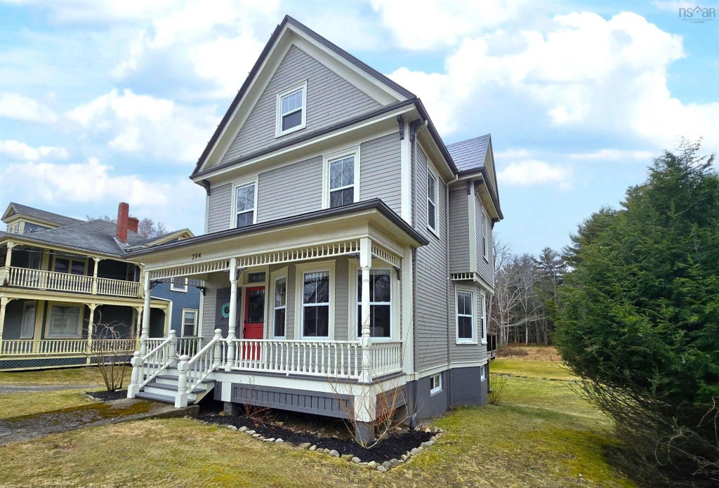 This classic, two and a half story, Edwardian home in beautiful Mahone Bay by the sea, is centrally located and just a five minute walk to the ocean. The house fronts on a level sidewalk on Main Street and consists of more than one acre -running from Main St to Kinburn St at the rear and fronting on both banks of the Maggie Maggie River. The home offers 3 floors of living space with a seasonal loft above its original carriage house. A generous-sized, front foyer, accessed from the covered verandah, has its original wood staircase complimenting the natural wood floors featured throughout this gracious, heritage home. The living-room, with its high ceilings and period moldings, has a broad bay window to the front and pocket doors to a separate dining-room at the rear. The dining-room has its own bay and an antique, built-in cupboard. The kitchen, which is newly appointed, is accessed from the front foyer, the dining-room or the back entry - which has a laundry/bath to one side and cloak closet to the other. One enters the mudroom from a large deck overlooking the back garden - the ideal location for family summer entertaining with friends. The carriage house in the back garden has a garage with storage at the front and a large workshop at the rear. An interior staircase leads to the loft 'summer get-away'. The 2nd floor of the main house has two bedrooms and a shared family bath, with a small den at the rear which serves as a passthrough to the attic staircase. The 3rd level of this home offers an alternative 3rd bedroom and a spacious family den at the front. One of this home's most beautiful aspects is that the property is traversed by a winding river which passes through a park-like setting at the rear, and fronts on Kinburn Street. Town amenities are a short walk away. This home has been renovated from "A to Z" including a metal roof with newly installed solar panels sized to 100% offset of power consumption, electric car charger, and a ducted heat-pump furnace.