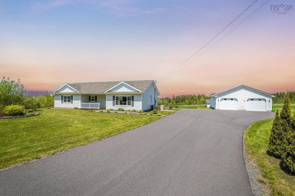 Charming One-Story Bungalow on Over an Acre – Prime Location! Nestled on just over an acre in the highly desirable English Mountain Road area, this 1,495 sq. ft. one-level bungalow offers the perfect blend of comfort, convenience, and hillside views. Enjoy gorgeous sunsets from your peaceful retreat, all while being just minutes from Highway 101 for easy access to surrounding amenities and only minutes from New Minas and Kentville. This well-maintained home features in-floor heating, two efficient heat pumps, and a water softener to ensure year-round comfort. A Generac generator provides automatic backup power for peace of mind. The paved driveway leads to a spacious finished double-car garage, offering ample storage and convenience. If you’re looking for a move-in-ready home with modern comforts and a serene setting, this property is a must-see. Schedule your viewing today!