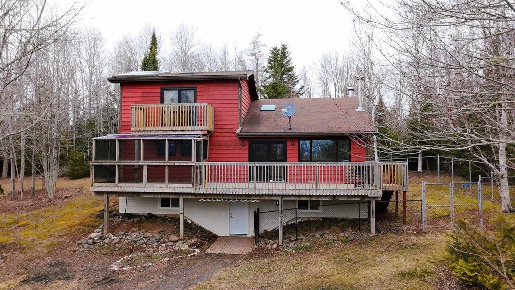 Welcome to this private 1.2 acre Upper Economy property in the heart of the Fundy Bay area! This custom 3-bedroom, 1.5-bathroom home offers an inviting space with vaulted ceilings, skylights, and a wood stove for cozy evenings. The main level features a bright kitchen with an L-shaped breakfast bar, dining area, and patio doors leading to a deck and screened room. Upstairs, the primary bedroom includes a large closet and private balcony. Two additional bedrooms and a renovated bathroom are just steps away. The walk-out basement adds potential with a recreation room, workshop, laundry room, and a new central heat pump for year-round comfort. Outside, enjoy the steel shed, fenced area, freshwater pond, and serene old-growth trees. Conveniently located near Halifax, Moncton, Truro, and Parrsboro, with fiber internet available and snowmobiling trails starting at your doorstep. Extras like a firepit, barbecue, and snowblower are included in the sale. Make this tranquil retreat your home!