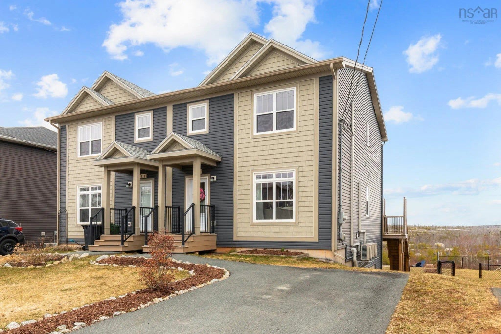 Welcome to this stunning semi-detached home located in the highly sought-after Governors Brook subdivision. Offering 4 bedrooms and 3.5 bathrooms, this thought fully designed residence is ready to welcome its new owners. Step inside to discover an inviting open-concept main floor, perfect for both everyday living and entertaining. The spacious living area flows seamlessly into the modern kitchen and dining space. The kitchen is a true highlight, featuring elegant quartz countertops, stainless steel appliances, and floor-to-ceiling cabinetry that offers both style and functionality. Enjoy the peace and privacy of the back deck, where you'll take in sweeping views of the rugged provincial conservation land—ideal for hiking and mountain biking. In the distance, you'll be captivated by breathtaking horizon views, including the city skyline to the east and ocean vistas to the south—an exceptional feature enjoyed by only a select few homes in the area. Upstairs, you'll find three generously sized bedrooms, including a primary suite complete with a walk-in closet and a luxurious ensuite featuring double vanities with quartz countertops. A convenient laundry room and an additional full bathroom complete the upper level. The fully finished lower level offers even more living space, with a fourth bedroom, an additional full bathroom, and a large rec room with walk-out access to the lower deck and beautifully landscaped backyard. Relax by the patio's stone fire pit and enjoy the comfort of your own private outdoor retreat. This home is the perfect choice for first-time buyers or anyone looking for comfort, convenience, and a touch of nature - all within a vibrant, family-friendly community.