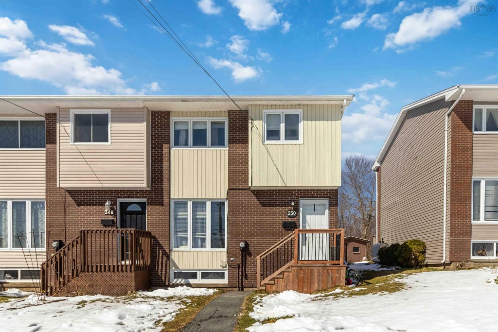 Welcome to 250 Flying Cloud Drive — a beautifully maintained townhouse nestled in the heart of Cole Harbour. This vibrant, central location offers no shortage of amenities including shopping, schools, restaurants, sports fields, parks, public transit, and community centres — everything you need, right at your doorstep. Backing onto a peaceful greenbelt, the home enjoys added privacy and direct access to scenic walking trails along Cranberry Lake — ideal for outdoor enthusiasts. Inside, you'll find a bright and spacious living room that flows into a newly renovated eat-in kitchen featuring brand new cabinets and modern finishes. The home has been freshly painted throughout and features vinyl windows, offering both style and energy efficiency. Upstairs, you’ll discover three comfortable bedrooms and a renovated full bathroom, giving the space a clean and contemporary feel. The lower level includes a 50% finished basement, perfect for a home office, rec room, or den, along with ample storage space. Step outside to your private, fully fenced backyard — perfect for relaxing, entertaining, or letting kids and pets play safely. The double car driveway allows for side-by-side parking, a rare and convenient bonus in this area. This home is the perfect fit for first-time buyers or young families looking for a move-in-ready property in a prime location.