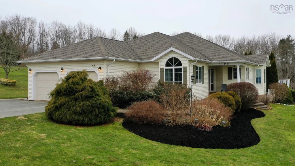 A private retreat called "Paradise" with spectacular valley view set on a mature 3.7 acres, along with a babbling brook. Superb location perched high on the lot with fantastic curb appeal, mature trees, and perennial gardens, set back from the paved country road, this beautifully maintained 3-bedroom family home with a finished walk-out basement. This property features the ultimate backyard along with a detached single oversized garage/craft studio/ music studio/flex recreation room, wired and fully insulated, you can make it what you wish. The back, side yards for greenspace for play, forested area, secluded and private patios and sitting areas, walkways, and landscaped oasis for your enjoyment. The main floor features an open concept design with a large kitchen boasting new upgrades. It features a breakfast bar with room for 5 chairs, quartz countertops, newer appliances, a movable center island for baking, plenty of cabinetry, and a breakfast nook presently used for scoping out the fantastic views! An open concept formal/casual dining area, an open concept living room with a propane insert fireplace, three bedrooms, including a primary master suite with a walk-in closet and ensuite tub bath, a laundry/mudroom off the garage entrance, complete the main floor. A private deck overlooking an expansive yard is the perfect spot to enjoy morning coffee and to take in the view! (3) Ductless heat pumps provide energy-efficient heating and cooling on the main floor living room area, the primary bedroom, as well as the lower level. The home also features in-floor radiant heat, oil-fired, with 6 zones. The lower level has a full basement with a walk-out to your backyard oasis, with an open concept for the office area, TV, Family recreation room, and 2 pc bath. Paved driveway, with plenty of parking. Generator panel. Minutes to Kentville, New Minas, Wolfville, Wineries, Golfing and Spa facilities, shopping and amenities. Fabulous commuter location near 101 to Halifax.
