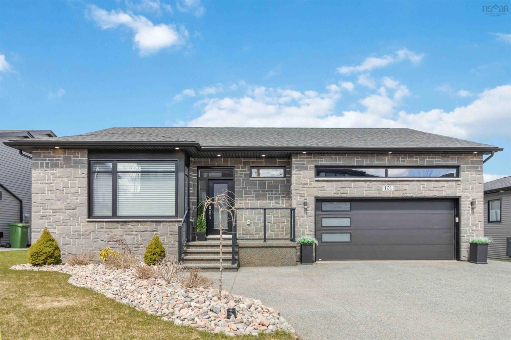 Welcome to 101 Theresa McNeil Grove—an architectural masterpiece built in 2021 that defines the art of fine living. Every element of this stunning four-bedroom, 3.5-bath home reflects thoughtful design and luxurious attention to detail. Whether you're a family, a professional couple, or seeking one-level living, this home adapts seamlessly to your lifestyle. From the moment you enter, you’ll be captivated by soaring 10-foot ceilings and an open-concept layout that flows effortlessly with windows highlighted by power-controlled Hunter Douglas Blinds. The designer kitchen is a showstopper—complete with quartz countertops, waterfall quartz kitchen island, floor-to-ceiling cabinetry, a Bertazzoni dual-fuel range (gas cooktop/electric oven), Thermador panelled fridge, Thermador microwave drawer, Thermador Dishwasher and hidden ladders to access upper cabinets with ease. Natural gas heating and cooking, in-floor heating in the ensuite, and a commercial-grade Maytag laundry setup bring a level of performance and comfort rarely found in residential homes. The main level features two spacious bedrooms, each with its own full en-suite, along with a stylish half-bath for guests. The primary suite includes a generous walk-in closet and a spa-like ensuite bathroom with heated floors. The lower level is equally impressive with 9-foot ceilings, two additional bedrooms, one full bathroom, and a rec room complete with a wet bar and pre-wired speakers—perfect for entertaining guests or accommodating older children. There's also ample storage and utility space. Outdoors, enjoy a private fenced yard, a composite deck with privacy glass and complete with power awning and natural gas hookup, and an in-ground irrigation system—all maintained by an on-demand natural gas generator for year-round peace of mind. Located in the sought-after community of Rockingham South, this home is truly a must-see. The craftsmanship, upgrades, and elegance throughout make it a rare offering in the Halifax