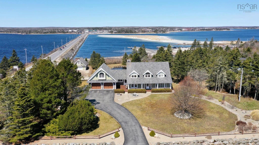 Five bedroom four bath luxury home with picturesque ocean and beach views. This sophisticated home is sure to impress with its expensive modern floor plan. Located just steps away from a beautiful white sand beach. For the ambitious home chef, there is a state-of-the-art kitchen with custom cabinetry, quartz countertops, marble backsplash, spacious island, stainless steel appliances which includes a dining area. Patio doors lead to the spacious patio offering breathtaking views of North East Point Beach. The main entrance welcomes you to a formal foyer and beautiful spiral staircase. The kitchen and dining area are open to the modern family room with propane fireplace for added ambiance. Also on the main level is the living room, office, laundry area, 1/2 bath with upscale marble accent wall and attached double car garage. Above the garage is a large loft, great for guests or extended family. A sophisticated landing at the top of the spiral staircase provides a natural transition to the upper level. Upstairs is two full baths and four bedrooms, including the luxurious primary offering gorgeous views, modern ensuite complete with tiled shower, whirlpool tub and custom built vanity with double sinks. The home offers floor to ceiling windows in majority of the spaces, allowing natural light to flood this upscale home. It is equipped with five heat pumps for efficient heating and cooling. The lower level offers a bedroom, gym, lots of storage space, workshop, utility room and single car garage. The exterior is beautifully landscaped with rock walls, granite steps, mature shrubs, pond, paved driveway and a detached 24X32 garage built in 2010 offering a loft on the second level. The patio is perfect for relaxing or entertaining offering sweeping ocean views. (Furniture is negotiable)