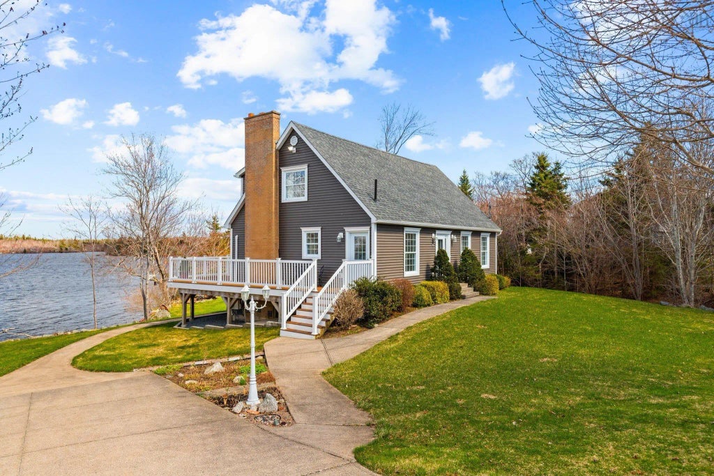 This beautifully maintained lakefront property features 214 feet of stunning waterfront with a private boat launch-one of only two on the street! Pride of ownership is evident throughout the home & its landscaped grounds. The main level includes a spacious living room, an intimate dining area, and a bright open-concept kitchen flowing into a cozy sitting room with an electric fireplace. Expansive windows along the back of the house provide spectacular lake views. Upstairs offers three bedrooms, including a large primary suite with his & hers closets & a private ensuite. A full bathroom and ample storage complete the upper level. The unfinished basement adds even more space for storage, hobbies, or workshop use, and includes a rear garage door perfect for boats or ATVs. Significant energy efficiency upgrades have been done—including a heat pump, insulated basement walls, and new exterior siding, achieving R2000-level standards. Additional improvements have been done including a new roof, basement windows, chimney work, and concrete walkway. Outside, the property shines with resodded lawns, buried downspouts, upgraded dock decking, and a new dock abutment. The deck's upgraded electrical setup makes seasonal lighting a breeze. This is a truly special home, ideal as a year-round residence or lakefront getaway.