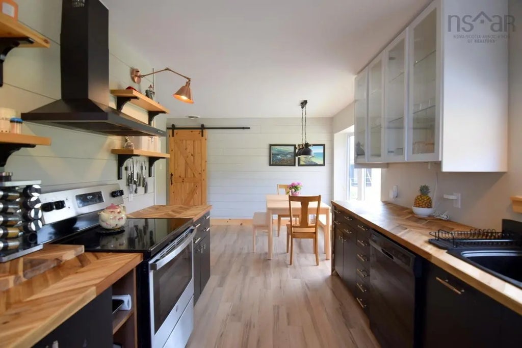 Very well maintained, 1980s bungalow with stellar view over the Margaree River Valley!  You will never tire of the views in any direction!  During their ownership these sellers have renovated most every aspect of the home.  Sexy bathroom/laundry room features a soaker air jet tub and tiled shower.   Sleek kitchen cabinetry with 'water fall' butcher block counters and stainless and black appliances give the kitchen a cozy, urban feel. Hardwood and 'plank' floors throughout the main are easy to maintain, especially with the central vac. An airtight woodstove adds both charm and cost efficient year round warmth.  Recently added heat pumps, on both the main and the basement level, provide efficient heating/cooling and dehumidifying during humid times. A self contained space, accessed from outside, provides a secure, private, home office, where you can leave it all behind at days end.  The 28 x 30 horse barn is a whole other story! This is a perfect setting for hobby farming, if this is your plan. The barn has its own well, a heated tack room, a hay loft, and 3 box stalls, a wash stall, and work shop area.  Turn out space on the upper field - the horses can come and go freely. There is also a small henhouse.  Location! Location! This property is 3 minutes to the grocery store, library, and local club,  5 minutes to sand beach, 20 minute drive to Inverness, 25 minute drive to Cheticamp or Baddeck, 10 minute drive to the school.  Grab your tube or your rod, stroll across the street, and enjoy the Majestic Margaree!