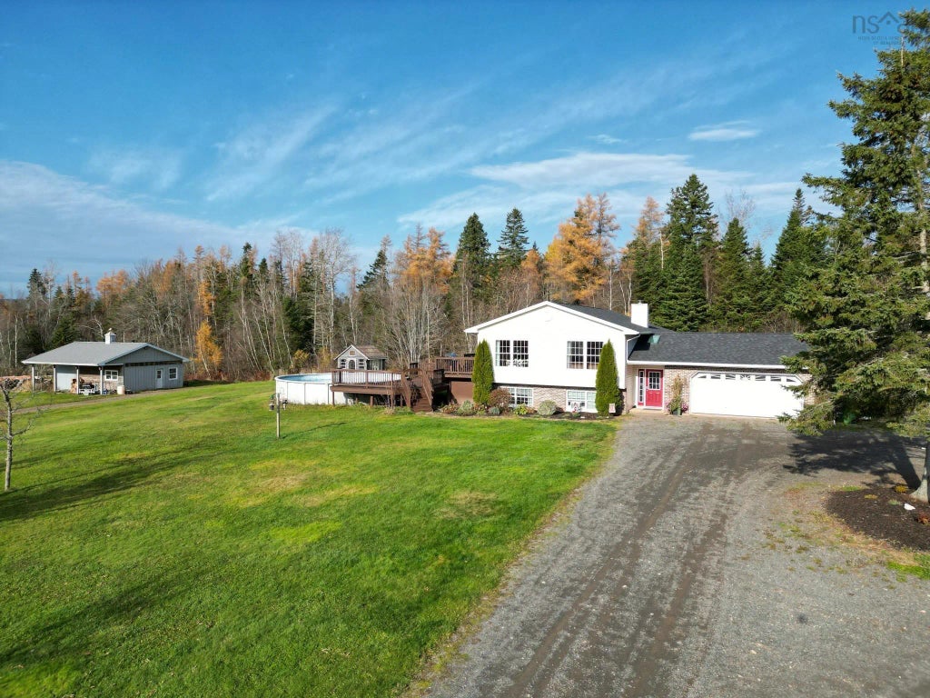 This lovely 6 BR, 2 Bath home with its walk through front back entrance is sitting on 2.72 acres, approx 5 mins from town & is offering you open concept living, cathedral ceiling, spacious kitchen with ample kitchen cabinetry, center island with seating for 4-5 people, stove & fridge are new, 6' garden doors that lead to the 2 tiered deck & 27' above ground pool, hardwood floors on the main floor, laminate on the lower level, oversized Primary BR with large walk-in closet & cheater door to the oversized main bath. The main bath has an air jet soaker tub, stand alone shower plus main floor laundry area. The lower level is offering 4BRs & 5pc bath, with floating walls it would be very easy to adapt these rooms to your living style or absolutely perfect for the blended family. In-floor heating is a bonus. The property has a 24x24 attached garage, 24x32 workshop & a 10x12 greenhouse. Roof shingles, Skylights & hot water tank replaced 2024, oil tank 2022. PWF (Pressure treated wood Foundation), with in-floor heated concrete slab. Life expectancy is 60-70 yrs. Pressure treated wood has a roll on moisture barrier (the same as concrete), plus vapour barrier.