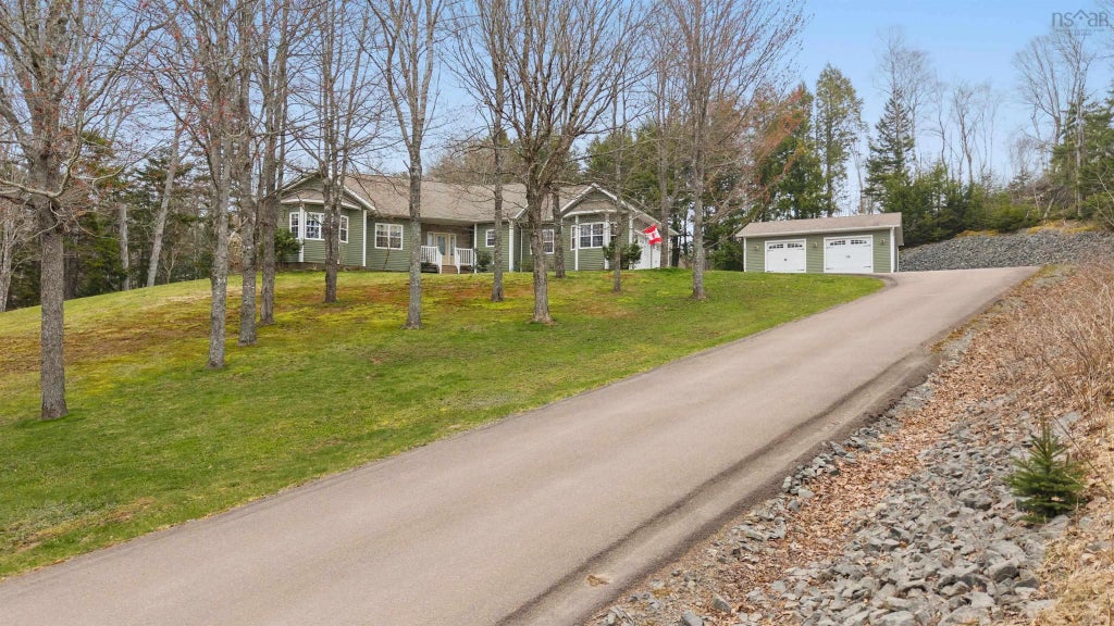 CUSTOM 14 YEAR OLD BUNGALOW with paved driveway located 15 minutes from Oxford NS & the TransCanada highway! This home is a true one of a kind property with both attached and detached double car heated/wired garages, stunning landscaped grounds, composite front covered porch, back large composite deck, children’s playhouse/storage shed, two outside fireplace settings, and located minutes from lakes in the area, four wheeler & snowmobile trails! This sought out in floor radiant heated home with hardwood & tile floors offers a large entry that showcases a beautiful open concept/vaulted ceiling space with large custom kitchen, dining room, living room and wrapping around to your garage entrance, laundry room, and a guest bath! Down the hall you will find a large master suite with a walk in closet, guest bedroom and full four pc washroom! Downstairs you will find a fully finished basement with a second guest bedroom, full washroom, large family room plumbing for a wet bar, utility/gym space and storage room.