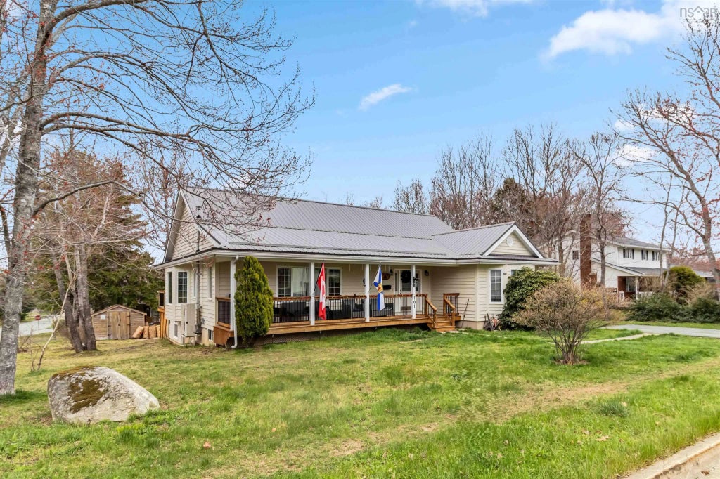 Welcome to 101 Olympiad! This lovely 3000+ sq ft Ranch-style bungalow located in sought after Pinecrest subdivision features 1800 sq ft of living area on the main floor, including 3 large bedrooms- the master with bay window, eat-in kitchen with loads of storage space and also a bay window overlooking the recently added expansive back deck, formal dining room, very large living room, laundry, 4 piece bathroom and beautiful spacious foyer entrance! Upon entering the home you will appreciate the natural woodwork, hardwood floors and the generous sized rooms throughout! On the lower level, with walk out entrance to the back yard, you will find a huge family room (36'9"x12') with cozy pellet stove, large 4th bedroom and a full bathroom. This provides an ideal spot for visiting family or a teenager looking for privacy. The home offers nice curb appeal, with a wonderful covered front porch, 2 driveways and spacious corner lot and is only minutes from the town park, pool and amenities. Recent updates include a metal roof, 4 heat pumps offering economical heat and cooling throughout the home, new front and back decking and laminate flooring on the lower level! A wonderful family home!