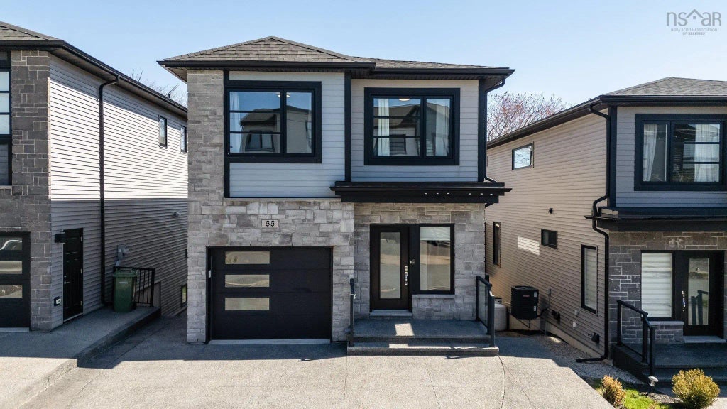 Discover 55 Darjeeling Drive — a modern, meticulously maintained home nestled in the heart of Long Lake Village. With peaceful provincial park trails just steps away and downtown Halifax minutes from your door, this location offers the perfect blend of nature and convenience. Spanning three fully finished levels, this home features 4 bedrooms, 3.5 bathrooms, and upscale finishes throughout. The main level is designed for both everyday living and entertaining, with 9-foot ceilings, rich hardwood floors, elegant crown moulding, and a welcoming open-concept layout. The standout kitchen is a chef’s dream, complete with floor-to-ceiling soft-close cabinetry, quartz countertops, an oversized island with undermount sink, and premium stainless steel appliances. The adjoining dining area opens onto a large 12x20 composite deck with glass railings — perfect for relaxing or hosting. A cozy propane fireplace anchors the living space, while a stylish 2-piece bath, tiled front entry, and interior access to the built-in garage round out the main floor. Upstairs, you’ll find a thoughtful layout featuring two spacious bedrooms with custom closets, a beautiful full bath, and a luxurious primary suite. The primary offers a walk-in closet and spa-like ensuite with dual sinks, a tiled shower, and air-jet soaker tub. The walkout lower level adds even more living space, including a bright rec room with backyard access, a fourth bedroom, full bath, and a utility/storage area — ideal for guests, teens, or a home office setup. Upgrades added three cars wide concrete driveway, concrete steps to connect the driveway with the backyard, under deck concrete huge patio. With a ducted heat pump for year-round comfort, and a fully fenced private backyard, this home is move-in ready and built for modern living.