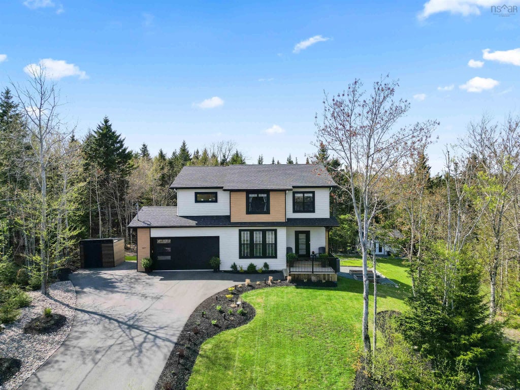 Welcome to 107 Edgett, a beautifully constructed Marchand home nestled in the quiet community of Kingswood North. Thoughtfully designed and meticulously maintained, this property sits on a 1.15 acre lot and offers a perfect blend of modern finishes and family friendly functionality. The main level welcomes you with a grand open to above great room, featuring soaring ceilings and a striking floor to ceiling fireplace. The kitchen is both elegant and practical, with white shaker style soft close cabinetry, quartz countertops, a spacious walk in pantry, and an expansive deck just off the dining area. A dedicated front office provides a quiet space for work or reading, and a well designed mudroom just off the double car garage offers the perfect drop zone for coats, boots, and bags, keeping the rest of the home organized and clutter free. Upstairs, you will find three generously sized bedrooms, including a luxurious primary suite complete with double vanities, a walk in shower, and a freestanding soaker tub. The lower level offers even more living space with a large recreational room, a bedroom, and a walkout to the private backyard, complete with a raised vegetable garden, mature trees and stunning landscaping throughout the property. One of the many highlights of this property is the 17x15 wired shed, currently set up as a games room, perfect for entertaining, relaxing, or converting into a home office or studio. Recent updates include a new UV well water system, new stove, washing machine, and many fixtures throughout the home, providing turn key peace of mind. Located just minutes from the amenities of Lower Sackville and Bedford, this home offers the ideal balance of tranquility and convenience.