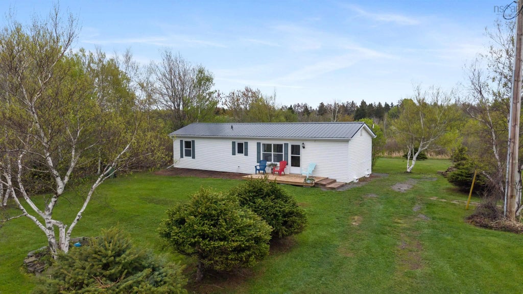 THIS LOVELY 2-bedroom home sits on a partial foundation. Ideal for family or great for empty nesters with all your requirements on the main floor. This home is energy efficient! Entering from the main door you walk into the living room, well-appointed eat in kitchen with a patio door access the back new deck, ideal for entertaining or family functions. Down the hall you access your primary bedroom, laundry space and full bath. The other end of the home houses the 2md large bedroom. Living here offers beautiful views of the ocean and Sunsets. Heading outside, the home is beautifully situated on a 1 acre lot with a large garage on a quiet and private manicured lot. Saving one of the best features of this property until last, is the deeded access to fabulous beach on the Northumberland Strait and quick access to the public beach is one wished. The septic & well were new when the home was brought to this location. The garage was on site when the lot was purchased.