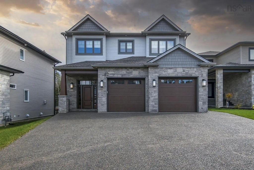 Welcome to 82 Shirley Elliot Court, an exceptional custom-designed home located in the most sought-after cul-de-sac of Brookline Park, West Bedford. This elegant two-storey residence offers approximately 3,400 sq. ft. of luxurious living space, featuring 4 spacious bedrooms, 4.5 bathrooms (including 3 ensuites), and a double garage. The main floor boasts a bright, open-concept layout with 10.6 foot ceilings, a chef’s dream kitchen with an oversized island, and a sunlit living/dining area perfect for entertaining. Upstairs, you'll find a serene primary suite, 2 junior suites, and and a dedicated laundry room. The lower level features a large rec room with wetbar and a walkout, a 4th bedroom, a full bath, and a versatile storage/multipurpose room. Premium upgrades include composite decking with glass railings, an exposed aggregate driveway, generator link, a striking 75" electric fireplace, and hard surface countertops throughout. Warranty until 2028!