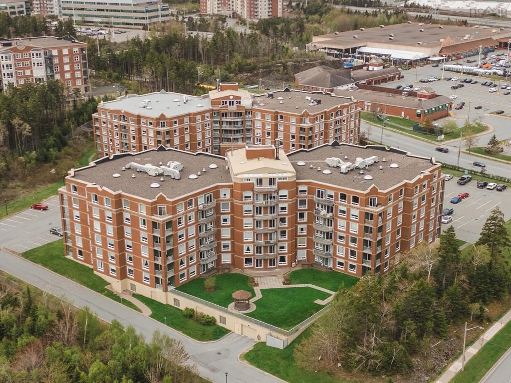 Sophisticated Penthouse Living in the heart of Clayton Park West. Welcome to an extraordinary penthouse residence, where timeless elegance meets modern sophistication. Meticulously designed and professionally curated, this 2,312-square-foot 2 bedroom , 2 bath suite offers a rare blend of architectural refinement, bespoke interiors, and panoramic views that frame the city skyline in spectacular fashion. Arrive in style via your private elevator, which opens directly to your foyer. Enter into the expansive great room, an open-concept space that exudes effortless luxury. Thoughtfully designed for both grand entertaining and intimate gatherings, the living and dining areas flow seamlessly into a gourmet kitchen outfitted with custom cabinetry, rich black granite countertops, and highend appliances. A refined alcove extends the space, offering versatility as a chic bar or a discreet home office. Step outside to the Southwest rooftop terrace, an exclusive outdoor escape. Every detail is to the highest standard, from the soaring vaulted tray ceilings and intricate cove moldings to the gleaming hardwood floors that run throughout. The beautifully appointed private quarters are equally impressive. Designer wallpaper accented hallway, leads to a stunning main bath and a secondary bedroom or den, complete with shared balcony access. Primary suite features custom premium built-ins, an expansive walk in closet, and a marble spa-like ensuite finished to the finest specifications. Enjoy the added luxury of a 2nd entrance on the sixth floor, and two dedicated parking spaces. An exceptional array of building amenities include a heated inground pool, two fitness centers, a sauna, a library, and a live in superintendent. Perfectly situated near major shopping area, the Canada Games Centre, and with immediate access to major highways, this residence offers the ideal balance of exclusivity and convenience. This is more than a condo unit, this is a statement in elevated living.