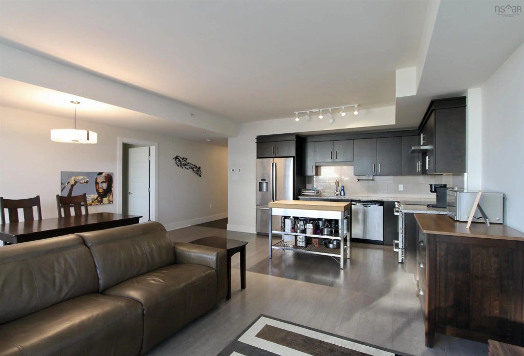 Welcome to The Anchorage — where refined European design meets modern comfort in one of the city's most stunning and convenient waterfront locations. This move-in ready, fully furnished condo has been thoughtfully designed to strike the perfect balance between sophistication and everyday livability, boasting contemporary interiors, high-end finishes, and sleek modern fixtures throughout. Start your day by taking the elevator down to Café Marco Polo, then enjoy your espresso on your expansive 17-foot balcony overlooking the harbour. From there, stroll to nearby boutiques, bookstores, and restaurants, or explore local bars and markets just steps away. When you're ready for a change of pace, beaches and golf courses are only a short drive away—and with the ferry terminal around the corner, Downtown Halifax is easily within reach. At The Anchorage, you'll enjoy a pet-friendly lifestyle, dedicated parking, and secure storage. Amenities include a skyline-view common room perfect for relaxing or entertaining, a fully equipped fitness centre, and professional on-site management to ensure peace of mind. Located in the heart of King's Wharf, The Anchorage invites you to live like royalty in a vibrant community that blends elegance, practicality, and an unmistakable sense of home. This is elevated living—made effortless. Don’t wait—contact your Realtor today and step into a turnkey lifestyle at its finest.