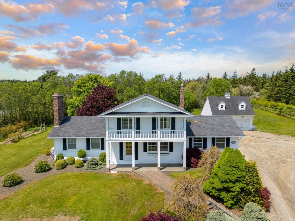 Welcome to a truly distinguished property, set well back from the road on impressively manicured grounds that reflect both prestige and care. Located less than 1 km from the vibrant Chebogue River Aquatic Club and under 5 km to Yarmouth’s main shopping district, this estate offers a rare blend of refined country living and convenient coastal access. Timeless in design, this high-quality Colonial Revival home offers 3 bedrooms, 1full bath and 2 half baths. The front bedrooms feature balconies overlooking the immaculate grounds and offering serene views of the Chebogue River. Inside, the home is bathed in natural light, gleaming hardwood floors adorn the main level, enhancing the elegant layout and highlighting the quality craftsmanship throughout. The property includes an attached single-car garage as well as a detached double-car garage with a finished second-level workshop—ideal for creative or professional pursuits. Comfort is ensured year-round with a ductless heat pump and a gravity-fed oil stove that keeps the home warm and functional even during power outages. Outdoors, the grounds are nothing short of spectacular; a professional-grade greenhouse, mature cherry trees, high bush blueberries, and thoughtfully curated landscaping create a setting as enchanting as it is exclusive. This is more than a home—it’s an estate for the discerning buyer. A rare opportunity to own one of Yarmouth’s finest private properties.