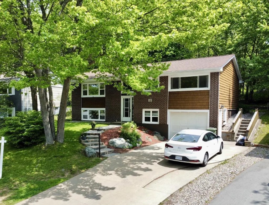 Affordable 4-Bedroom Home with Character in Sought-After Nantucket! Don’t miss this opportunity to make this charming and budget-friendly 4 bedroom, 3 bathroom split-entry home with a den your own! Start by ascending the custom stone steps to the welcoming main entrance. Inside are hardwood stairs lead to the main level where you’ll find gleaming hardwood floors. To the left, a spacious living room features a cozy fireplace, perfect for relaxing evenings. Straight ahead is the bright eat-in kitchen with direct access to the partially fenced, landscaped backyard, ideal for kids, pets, or entertaining. Adjacent to the kitchen and living room is the formal dining room, which opens through patio doors onto a deck, expanding your living and hosting space. The main level also includes three generously sized bedrooms, a full 4 piece bathroom, and a private ensuite in the primary bedroom for added convenience. The lower level offers even more space, including a large family room with a second fireplace, a fourth bedroom, a versatile den, and a powder room. The utility room provides both laundry and storage space, and at the far end, there’s a built-in single-car garage with plenty of room. Located in the desirable Nantucket area, this home offers value, comfort, and potential. It won’t last long—have your REALTOR® schedule a private viewing today before it’s gone!