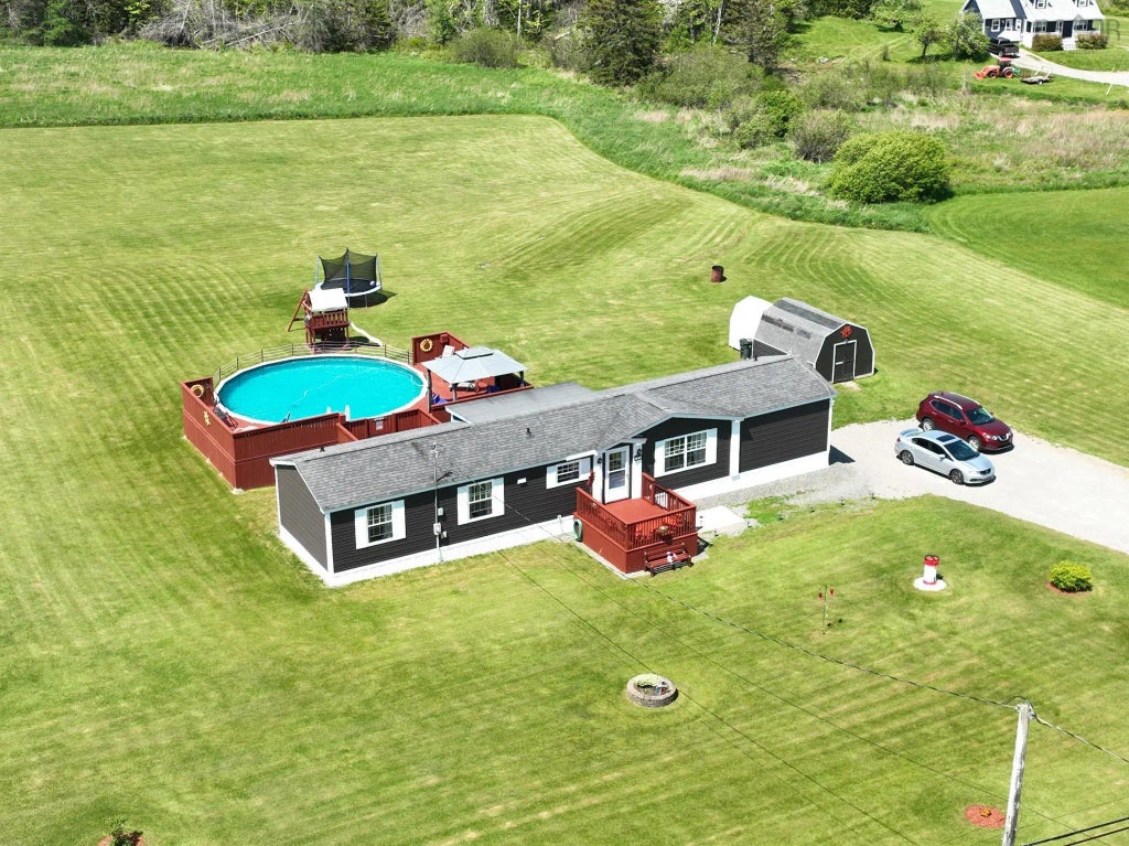 Set on a meticulously maintained 2.6-acre lot, 1980 Gabarus Highway offers comfortable living just five minutes from Sydney River. This three-bedroom, two-bathroom mobile home sits on a fully cleared and beautifully landscaped lawn that feels like it was lifted from the pages of a home and garden magazine. The home is accessed through a spacious mudroom that opens into a bright, open-concept kitchen. Floor-to-ceiling windows flood the space with natural light, and an island with bar seating provides the perfect divider between the kitchen and dining area. Whether you're hosting or enjoying a quiet night in, this layout offers both functionality and style. To the right, a cozy living room leads to the large primary bedroom, complete with an ensuite bath featuring a soaker jacuzzi tub. On the opposite end of the home are two evenly sized bedrooms and a full four-piece bathroom, ideal for family or guests. At the rear of the home, a second mudroom houses the laundry area and provides access to the back deck. Step outside to enjoy the expansive backyard, where a patio area sits beside a well-maintained above-ground pool — perfect for enjoying Cape Breton summers. A storage shed offers additional utility, and the large gravel driveway ensures plenty of parking space. This property reflects clear pride of ownership throughout, both inside and out. With its impressive landscaping, well-planned layout, and convenient location, this is a great opportunity for anyone looking to enjoy peaceful living close to town.