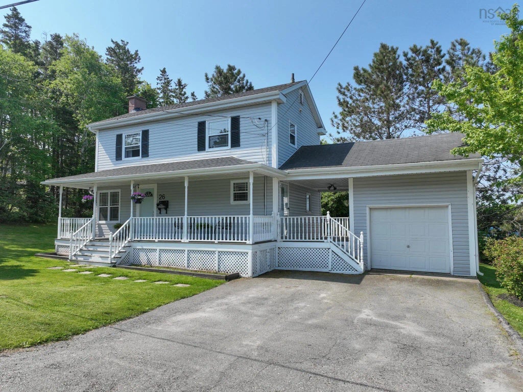 A classic two-storey home in the heart of Sydney River, 26 Woodlawn Drive offers space, warmth, and excellent functionality for modern family living. Set on a private lot with a landscaped backyard and mature trees, the home combines traditional charm with thoughtful updates. A covered front porch leads into a bright living room, where natural light highlights the hardwood floors and a fireplace adds comfort and character. The open layout connects the living space to the dining area, with a ductless heat pump for year-round efficiency. The galley-style kitchen is both functional and stylish, featuring stainless steel appliances, a breakfast nook, and easy access to a side mudroom entrance. Off the mudroom is a detached garage, connected by a covered patio and deck—perfect for transitioning between indoor and outdoor spaces with ease. Upstairs opens into a central foyer with three evenly sized bedrooms, each with closet space and natural light. A four-piece bathroom completes the upper level. The lower level is designed for entertaining and everyday convenience, featuring a finished rec room with a propane fireplace and bar area. There's also a two-piece bathroom and a dedicated laundry room with extra storage. The home has been very well maintained and offers curb appeal, functional flow, and outdoor space for family enjoyment. It's a short walk to Sydney River amenities and just a five-minute drive to the Cape Breton Regional Hospital—ideal for those seeking a blend of comfort, practicality, and location.