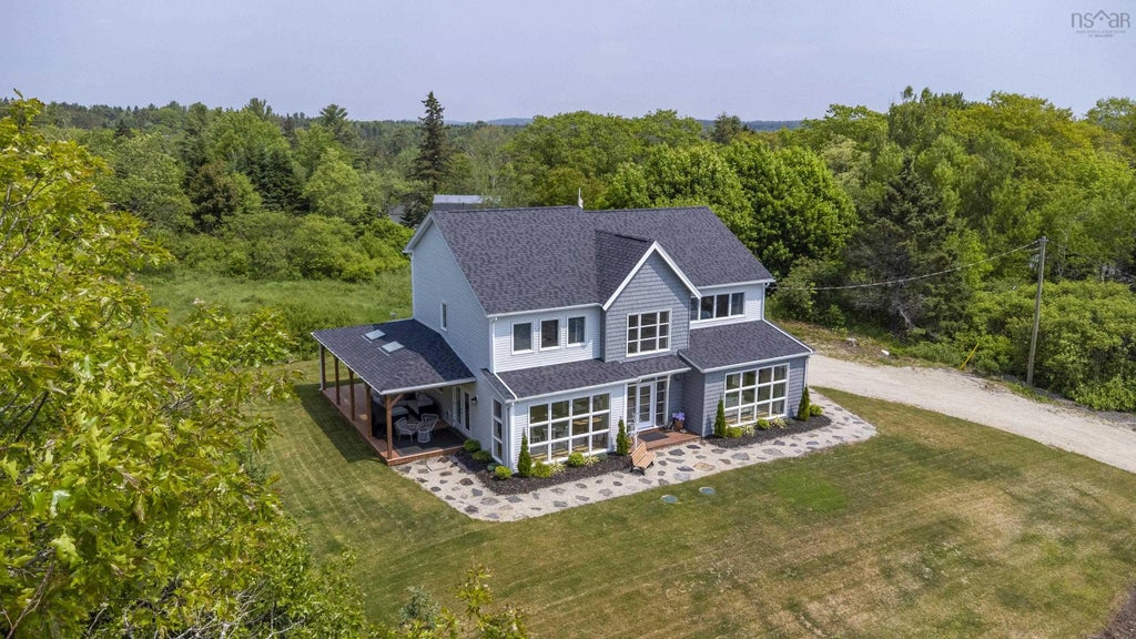 Discover your ideal seaside retreat at 6 Brightside Lane, Chester Basin, Nova Scotia. This just three year old home offers over 2,600 square feet of elegant living space, blending a charming Cape Cod aesthetic with modern amenities. Situated in a tranquil community, the property provides deeded water access, including a wharf, perfect for kayaking, boating, or simply enjoying the serene ocean views. The wharf is private to the four homes who have deeded access. Inside, the home welcomes you with expansive windows that flood the space with natural light, creating a warm and inviting atmosphere. The open-concept layout seamlessly connects the living, dining, and kitchen areas, making it an ideal setting for entertaining. The living room features a cozy propane fireplace, perfect for relaxing evenings. The chef’s kitchen is equipped with high-end appliances, generous counter space, a central island, and additional conveniences such as a butler’s pantry, coffee bar, and mudroom just off the kitchen. The primary suite serves as a private sanctuary, complete with a spacious bedroom, a luxurious ensuite bathroom, and a walk-in closet. Two additional well-appointed bedrooms provide comfort and privacy for family or guests. The home includes 2.5 bathrooms to accommodate busy mornings with ease. Step outside onto the covered porch to enjoy your morning coffee or dining while taking in scenic water views. The property also features a double heated garage with an epoxy finished floor offering ample storage for vehicles and outdoor gear. Located in the picturesque community of Chester Basin, this home combines coastal living with modern comfort—welcome to your new seaside haven. Golf course and Yacht Club located 10 min away in Chester. Halifax is just 30 min away on the soon to be doubled highway and the Airport is 60 min .