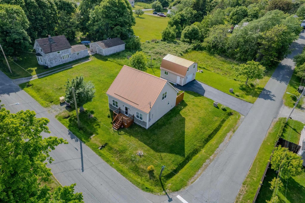 Discover the perfect blend of modern style and turn-key convenience in this immaculate home, only five years old and in excellent condition. Step inside and be captivated by the bright and airy open-concept layout, flooded with natural light that highlights the gleaming hardwood floors. The living space is defined by a beautiful staircase that ascends to a unique loft-style bedroom, which dramatically overlooks the living area below. This private upper level also includes a convenient half-bath, creating a perfect personal retreat. This property is as practical as it is beautiful. The exterior features beautifully landscaped grounds, a double paved driveway for ample parking, and a durable, low-maintenance metal roof. Year-round comfort is guaranteed with an efficient electric heat system and a heat pump for both heating and cooling. Built on a solid 4-foot frost wall, this home was constructed with quality and longevity in mind, ensuring peace of mind for years to come. The true bonus is the incredible 20'x24' barn-style garage, which includes a full staircase leading to a spacious upper loft. This versatile space offers limitless potential, whether you envision a home office, an art studio, a workshop, or simply an abundance of clean, dry storage. Exceptionally clean and ready to move into, this stunning property is a rare find. Don't miss your chance—schedule your showing today