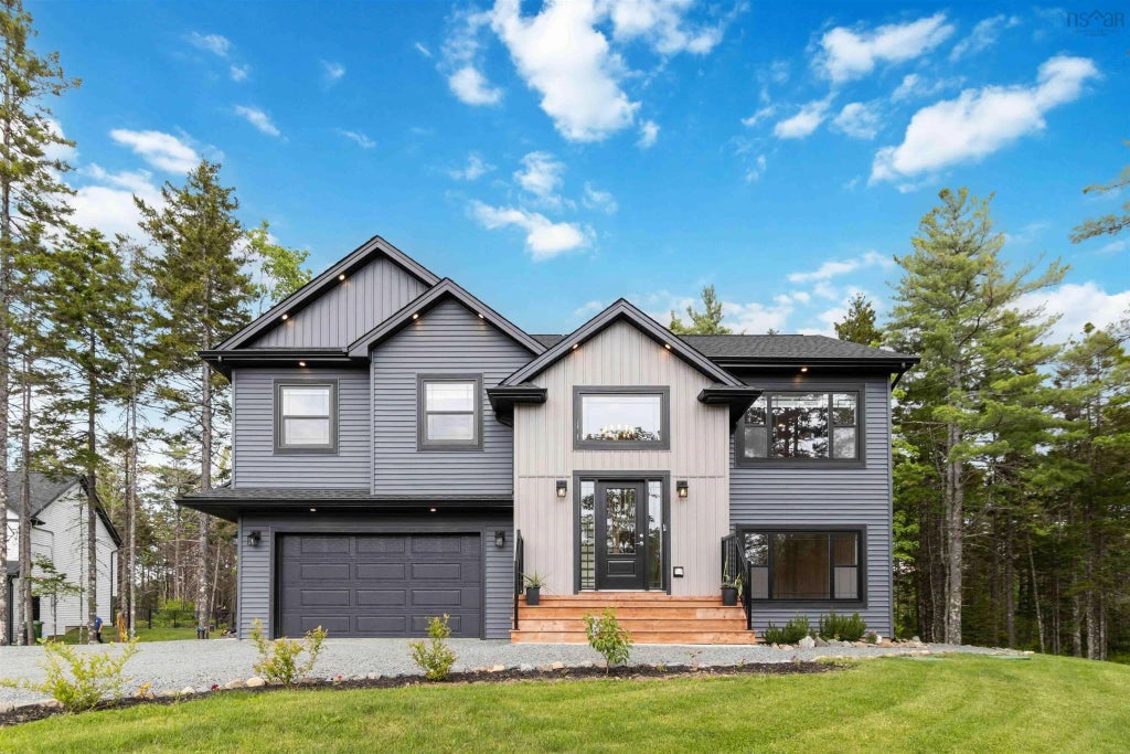 Morning coffee tastes best when the only sound is wind rustling through the trees. Built in 2022 by Marchand Homes, this split-entry rests on nearly two wooded acres, a peaceful escape just thirty minutes from downtown Halifax, twenty to Burnside, and close enough to Lower Sackville to keep life easy. Step into a bright foyer and open-concept living space, warmed by an electric fireplace and cooled by a ductless heat pump as seasons shift. The kitchen island invites company while supper simmers, and a sliding patio door leads onto an expansive deck overlooking your quiet, treed backyard. Down the hall, the primary bedroom features a walk-in closet and private ensuite. Two more bedrooms and another full bath complete the main floor. On the finished lower level, the walkout mudroom greets boots and backpacks with a built-in bench before opening to a generous rec room, fourth bedroom, and third full bathroom. With plenty of space and privacy, this versatile level could easily accommodate multi-generational living, a comfortable home office, or the ideal space for movie nights. Life here feels uncomplicated. A double garage keeps your vehicles protected, and nearly two acres of wooded privacy encourage gardening, outdoor games, or peaceful evenings under soft lights as twilight settles through the trees. With remaining new home warranty coverage for added peace of mind, all that's left is to settle in. Book your private showing today!