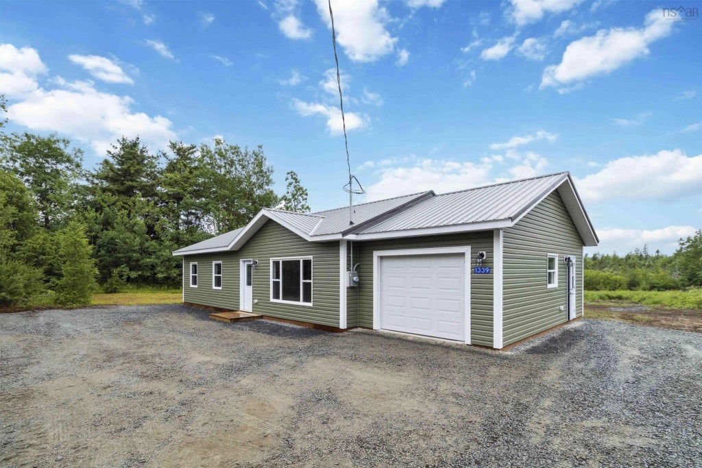 Discover the perfect blend of comfort, efficiency, and rural tranquility in this newly constructed bungalow approximately 8 minutes to Bridgewater. Set on a level 2.59 acre lot with sunset views over a peaceful forest backdrop, this low-maintenance home offers 1092sqft of accessible living space and a 336sqft attached garage - ideal for retirees, first-time buyers, or anyone seeking modern simplicity. The open-concept kitchen and living area features soaring vaulted ceilings and is the perfect space for entertaining, flowing naturally onto the back deck through French doors. A 24,000 BTU dual zone ductless heat pumps warms and cools the space with efficiency. Three bedrooms include a spacious primary with a heat pump head and a private powder room. The attached 14'x24' garage houses washer/dryer hookups, utilities, storage, and a remote-controlled garage door opener. A circular driveway provides easy access and future flexibility for outbuildings, play area, garden space or more! HST is included in the purchase price and an 8-year home warranty ensures peace-of-mind for the new homeowner. First-time homebuyers take note of the new federal GST rebate program!