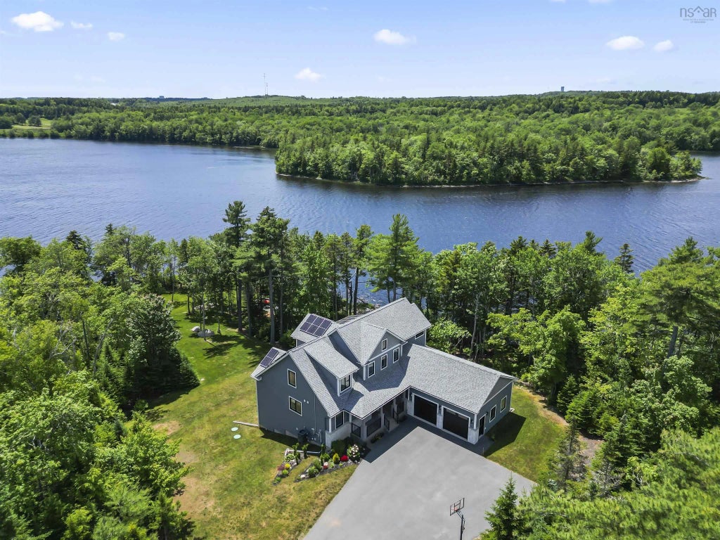 Stunning executive Lakefront Home in the sought after St Andrews West subdivision of Fall River. This former QE2 Grand Prize Lottery Home has spectacular attention to detail inside and out. Privately tucked down a long driveway overlooking Kinsac Lake, the property offers landscaped grounds, mature trees, lakeside fire pit, hot tub, and multiple points of easy water access. The home fills with natural light. High end selections and custom finishes throughout, from the floors to light fixtures. The main living area is completely open, warm and welcoming, and highlighted by the double height vaulted ceilings. The kitchen is thoughtfully designed with waterfall quartz island counter top, gas stove, pantry, and nearby dining nook with built in window seating. The primary suite is spacious with a phenomenal closet and a spa like en suite featuring a soaker tub, gorgeous walk-in shower, and double vanity. Upstairs are three more bedrooms, a built in workstation, and another full bathroom. Downstairs, the basement has a large home office, walkout, full bath, games area, wet bar, wine cellar, and a home gym (or place to throw kayaks). This is a great home for family living, entertaining, recreation, or just enjoying some quiet down time. All this, plus a double car garage, energy saving solar panels, whole house ducted heat pump, and all the benefits of living in Fall River.