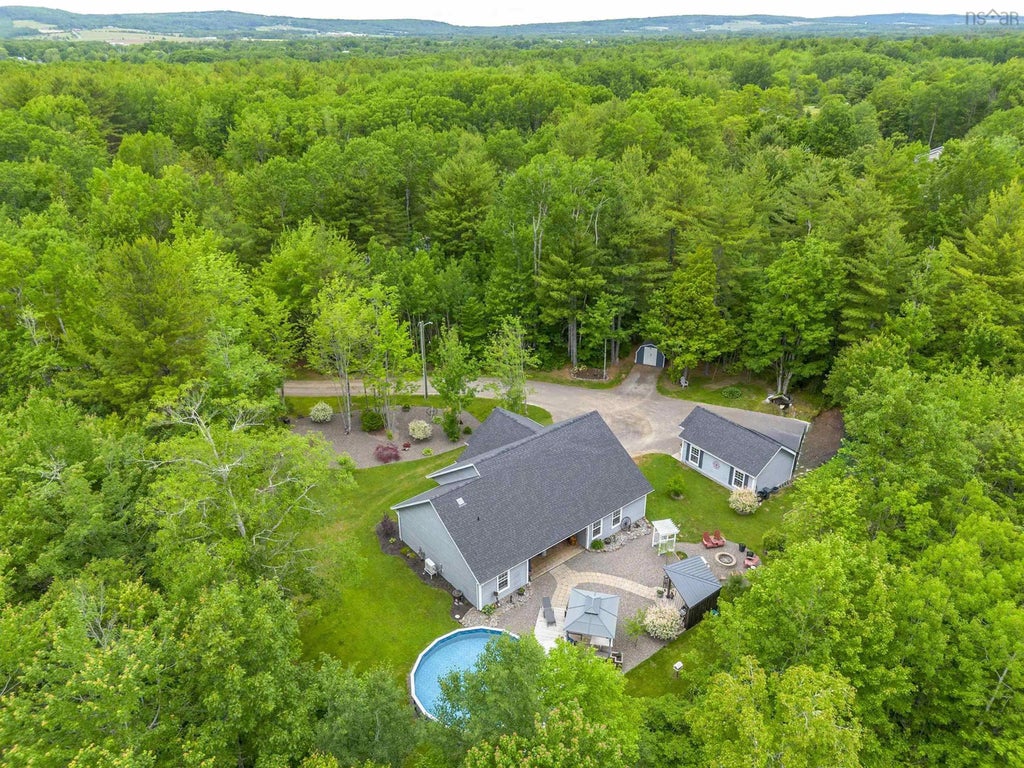Your dream home awaits! Located on popular Middle Rd, this stunning property offers the perfect mix of luxury and privacy! Secluded from the road and sitting on a wooded 3.2-acre lot, nature is your only neighbour. Lovely landscaping and low maintenance gardens with plenty of parking space makes for a good first impression. The interior of this one level home is nicely finished with durable tile flooring that gives the appearance of wood and is paired with cozy in floor heating. The open concept living space has a great indoor/outdoor feel with its huge patio doors leading to the covered back veranda. Two secondary bedrooms share a 4pc bath with sun tunnel on one end, followed by a private primary suite on the opposite end of the home. Wait until you see the spa like ensuite bath! Complete with dual vanities, a walk-in tile/glass shower, and a big soaker tub with a cozy electric fireplace for added abundance while unwinding after a long day! The chef’s kitchen is complete with modern included appliances and lots of storage and prep space. Heading back outside, the backyard oasis is straight out of a magazine! Outdoor kitchen with included smoker, bar fridge, and sink allows you to entertain in style, while the aluminum gazebo is a great spot to sit back and take in the private surroundings. Take a dip in the heated above ground pool, or grab the marshmallows and gather around the firepit! Both an attached and a detached garage gives you plenty of storage and hobby space to work on a project. This home is only 4 years old, but shows like new! Don’t miss your chance to own special one-of-a-kind property!