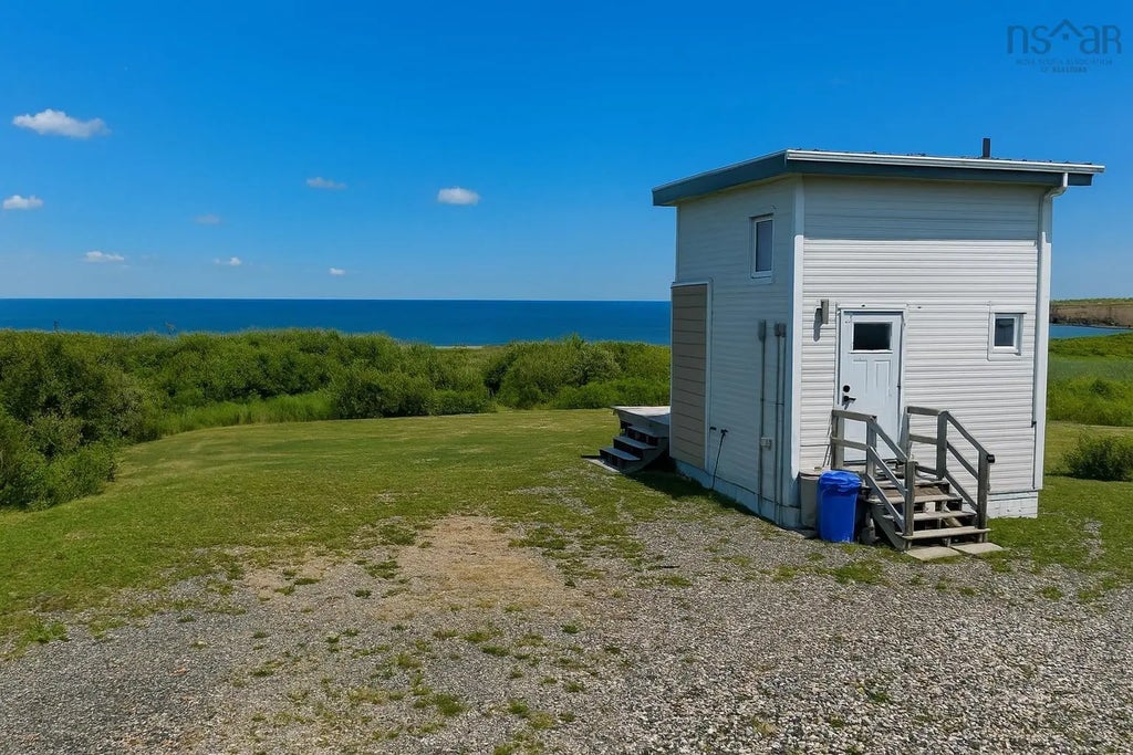 Welcome to a rare and refined coastal property in Dominion. This well-designed 302 sqft micro-home offers modern living in a compact, efficient, and beautifully curated space, all perched on 2.67 acres of land with 149 feet of ocean frontage. Known as “Modern Micro-Home on the Ocean” on Airbnb, this property has proven appeal as both a personal retreat and an income-generating investment. Completed in 2021 with a thoughtful plan by Nomad Micro Homes, the home is cleverly laid out to maximize space and natural light. The loft bedroom comfortably fits a king-sized bed plus a couch and offers incredible ocean views, while the main floor features a well-appointed kitchen, a cozy living space, and a clean three-piece bathroom. Step outside to the large front deck and enjoy uninterrupted views of the Atlantic. Although situated within a community, the property’s layout and private driveway provide a sense of complete privacy. Dominion Beach is nearby for easy water access, while the property's cliffside location offers dramatic scenery right from your doorstep. The home is serviced by municipal water and sewer, sits on durable screw piles, and is heated by electric baseboards with additional comfort provided by a ductless heat pump. The electrical system includes a 200-amp panel, a convenient outdoor electric vehicle charger & a generlink connection for confidence in power outages. A storage container will remain on-site for the new owner’s use. Whether you're looking for a peaceful getaway, a minimalist lifestyle, or a lucrative rental opportunity, this oceanfront property checks all the boxes. Modern design, privacy, and breathtaking views! You must see it for yourself.