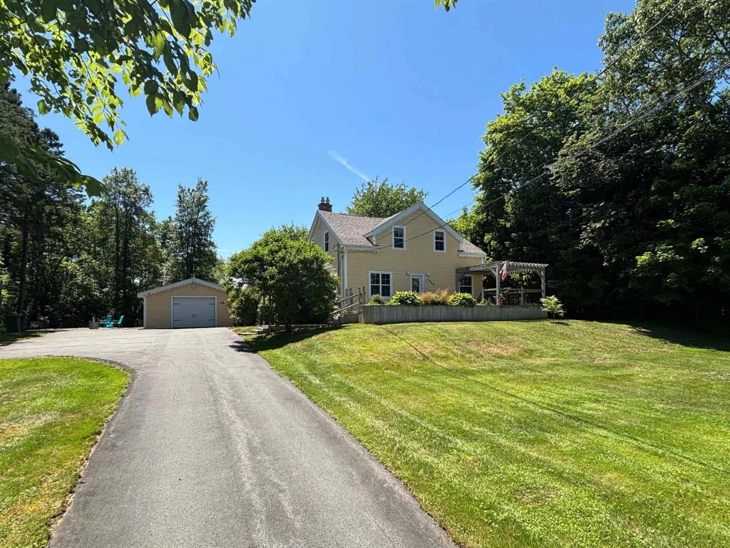 Country living in Lower Sackville! This beautiful 4-bedroom family home set on over ½ an acre with a mix of hardwood trees is ready for new owners. Enjoy the sunsets from the private rear patio while you watch the kids in the pool or relax on the charming front patio and enjoy your nicely landscaped front yard. An open country kitchen greets you as you enter from the convenient mudroom and the large living room is perfect for relaxing or family get-togethers. A main floor bedroom that could also be used an office or den and a full bath with a soaker tub, separate shower, and laundry area complete the main level. Upstairs finds three plus-sized bedrooms, including the primary with walk-in closet, and another full bath. The basement level is unfinished but offers lots of storage and a potential hobby space. The home is well insulated and heated with economical ductless heat pumps and a forced air oil system. Recent upgrades include new roof shingles in 2024, a new stove and microwave range hood, and a new pool pump. A double detached garage, huge storage shed, and paved parking for several cars or sports nets also included. Excellent value and location with quick closing available. Book your viewing today!