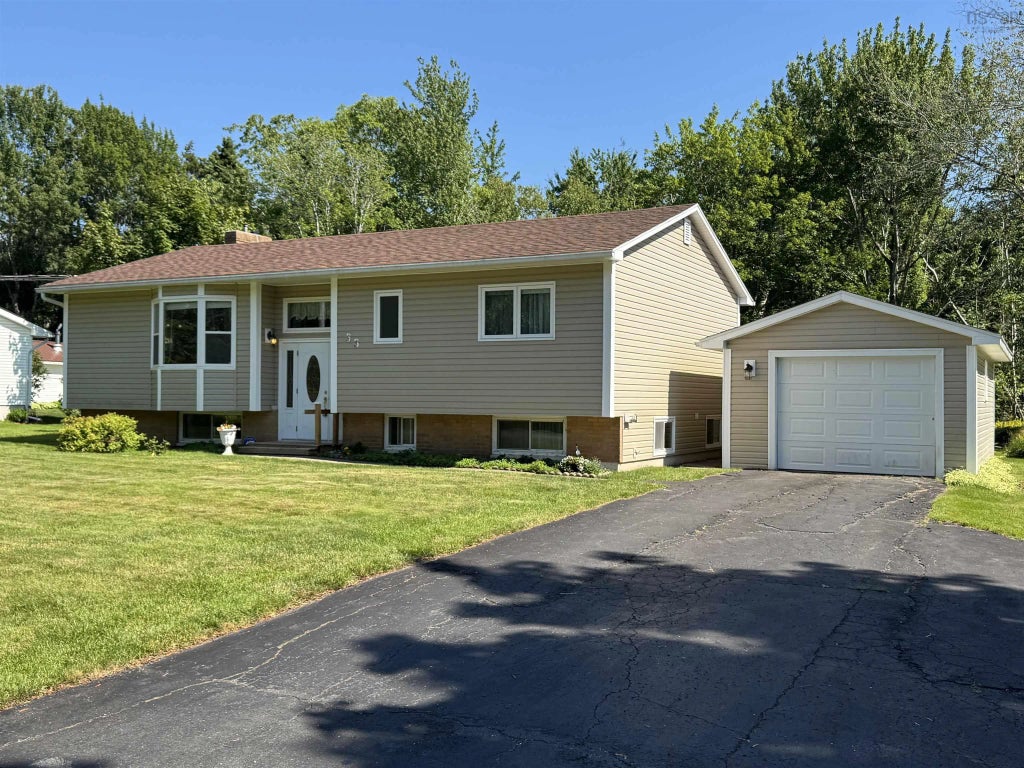 Nestled in the sought-after Valley Woods subdivision in Stellarton, this spacious split entry home offers the perfect blend of comfort, privacy, and functionality for the whole family. With 4 bedrooms and 2 full bathrooms, there’s room for everyone to spread out and enjoy. The main floor features a bright living room with a patio door leading to a newer back deck—ideal for summer BBQs or morning coffee overlooking the private, tree-lined backyard. You'll also find a dining area, well-appointed kitchen, and three bedrooms on this level. Downstairs, the fully finished basement offers even more living space with a cozy rec room featuring a pellet stove, a full wet bar perfect for entertaining, a fourth bedroom, another full bathroom, laundry with great storage, and convenient walkout access to the backyard. A paved driveway leads to a detached wired garage, offering plenty of space for vehicles or workshop use. With a heat pump for year-round efficiency and a location known for its family-friendly atmosphere, this home is ready to welcome its next owners.