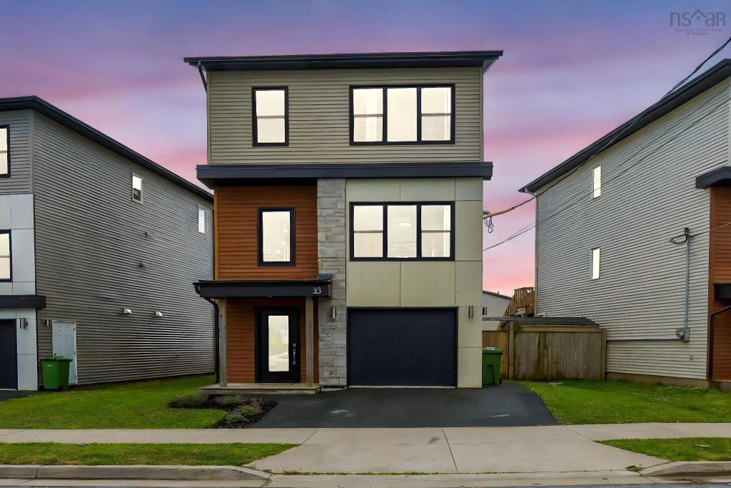 Welcome home to 33 Mica Crescent, a property situated in the highly sought-after Governor's Brook subdivision. This residence features three bedrooms and four bathrooms, designed to meet your every need. The main level boasts a modern, open-concept living area. The kitchen is equipped with quartz countertops, ample cabinetry, and a spacious center island. The dining room offers a distinctive mezzanine overlooking the foyer, while the expansive, well-lit living room includes a cozy fireplace with a barn board facade and a heat pump for efficient heating and cooling. A convenient powder room is also located on this level. The second level hosts the primary bedroom, complete with a heat pump for personalized comfort, a generous walk-in closet, and a four-piece en-suite bathroom featuring a double tiled shower and quartz countertops. Additionally, there are two more bedrooms, a five-piece main bathroom, and a laundry closet on this floor. The lower level provides further amenities, including another powder room, a large recreation room, direct access to the garage, and a walkout to a spacious lower patio, leading to a fully fenced backyard. This home is within walking distance to the McIntosh Run Community Trail and just minutes from downtown Halifax. Your dream home awaits.