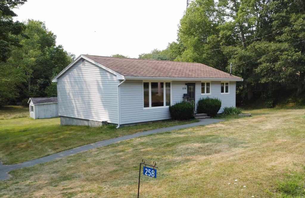 Attention first-time home buyers & investors! Here is a well-built affordable home in a primary location. It is clean, solid and well worth the investment to upgrade to your personal taste & needs. The main level is open and bright with newer vinyl windows throughout. The generously sized eat-in kitchen could be renovated to become the centre of your household, adding tremendous value to your investment as you build equity. The living room has a large picture window that lets in lots of light and the southern wall has been set-up to accommodate a Selkirk chimney should you wish to add a woodstove or fireplace (or propane). There are 3 decent sized bedrooms and a 4-piece bathroom on the main level. The partially finished basement is full concrete and has high ceilings. When fully finished, it will double the total living area of this home. Where the set tub and washing machine hook-ups are would be a great location for a 2nd bathroom in the lower level. The 3 back basement windows are high enough above ground level that they could be converted to larger egress size without requiring window wells. This would enable you to have 2 extra bedrooms in the basement. Look up and you can see the floor boards and joists. It is evident how well this house is built! The zoning of R1-b permits duplexes & in-law suites. The side entrance could provide access to lower level should you wish to create an apartment there. The shed is at end of life but where it sits would be a good location for a garage. Septic recently inspected and is working fine. The roof may need re-shingling, but doesn't leak and the attic space is well vented and dry. Hot water tank is 12.5 yrs and the electrical panel is a modern breaker one (and not Stab-Lok). The 100 amps should be sufficient to support a heat pump. The spacious and landscaped 1/2 acre lot goes all the way back to beyond the tree line with flagging tape at the corners. New video tour now available!