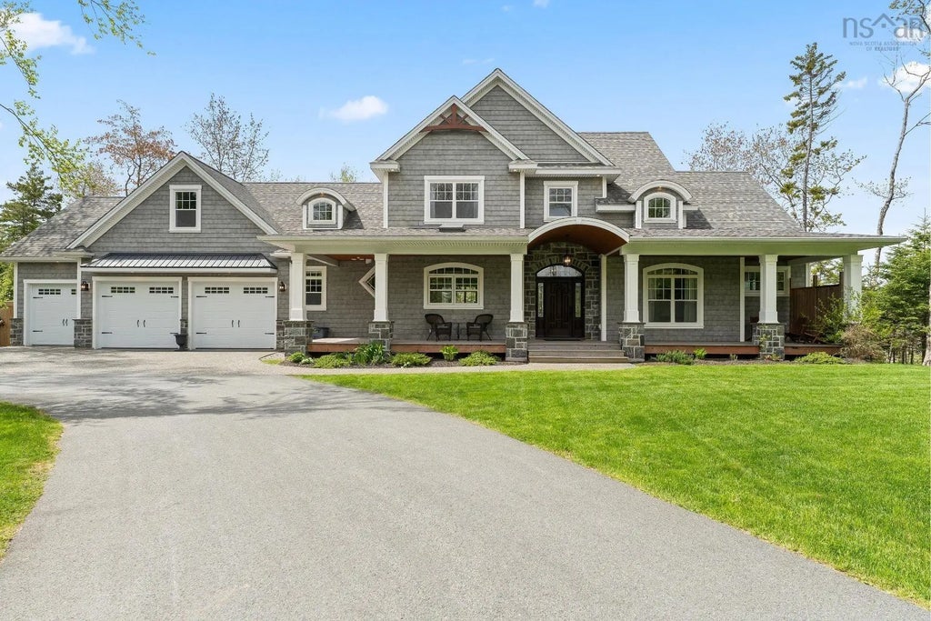 Nestled on the serene shores of the coveted McCabe Lake, this striking lakefront property seamlessly blends timeless elegance with modern comfort. This 2-storey custom built masterpiece showcases meticulous attention to detail with high end finishes throughout. It truly is a sanctuary of refined living. The home welcomes you with a luxuriant front porch that leads you into the main foyer. Discover an homage to fine craftsmanship with solid wood trim and solid oak arched beams gracing the entry and wood beams showcasing the 21 foot vaulted ceiling, infusing the space with warmth and character. The grand living areas are adorned with custom-made wood arched doors imported from Quebec, a testament to the home’s commitment to quality and elegance. The primary suite on the main floor offers luxury with a walk-in closet, ensuite bathroom, and Juliette balcony with lake views. Entertain in style with a chef’s kitchen, equipped with double dishwasher and a large walk-in pantry, providing ample storage for all your culinary essentials. Unwind by one of two electric fireplaces that cast a cozy glow on chilly evenings. Harness your own creativity with separate spaces for a home office and studio. With ample storage and organizational solutions the rooms easily combine functionality with sophistication. Outside, an expansive patio hosts a heated saltwater pool. The lower level offers a calm retreat with a full bar and wine cellar. With 185 feet of lake frontage and a fire pit, there are ample opportunities for lakefront living. You will see the attention to detail from the six zone sound system from Russound to the exterior opening bathroom that makes pool use even easier. The home employs a three-part heating system for year-round comfort and efficiency. The triple car garage accommodates four cars effortlessly and includes an EV outlet. Impeccably maintained and custom-designed, this home offers a rare opportunity to own a slice of lakeside paradise in Nova Scotia.