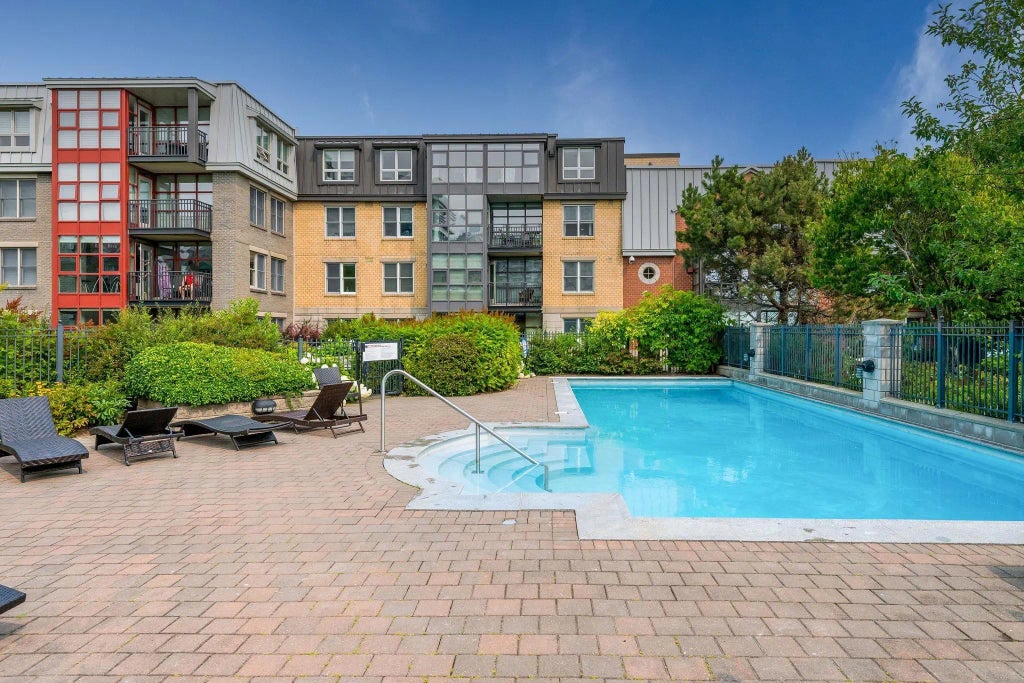 Just when you thought summer was winding down, Bishop’s Landing turns up the heat! Grab a floaty and your favourite shades, your new urban retreat is serving up vacation vibes all year long. Enjoy front-row access to the ultimate staycation- heated outdoor pool, bubbling hot tub and a waterfront boardwalk that makes every run feel like you're jogging through a postcard. Inside, your air conditioned studio condo is the perfect cool-down zone, featuring an open-concept layout anchored by a solid maple kitchen, gleaming black granite counters, all-new appliances and a casual breakfast bar perfect for early morning brews or late-night bites. Unwind in your oversized bathroom with a separate shower and a soaker tub made for bubble bath marathons. Floor-to-ceiling windows and double doors blur the line between indoors and out, opening to your personal patio tucked into a lush, leafy courtyard that feels like your own secret garden. Kick back with your drink of choice or make your way to the pool where carefree afternoons are always on deck. You’ll love the perks of in-suite laundry, low condo fees, 24-hour concierge, fitness center, guest suite and several recent upgrades to keep your space feeling modern and fresh. The city's best plates and pours are steps away. This is resort-style living without ever leaving the city. Let the good life begin!